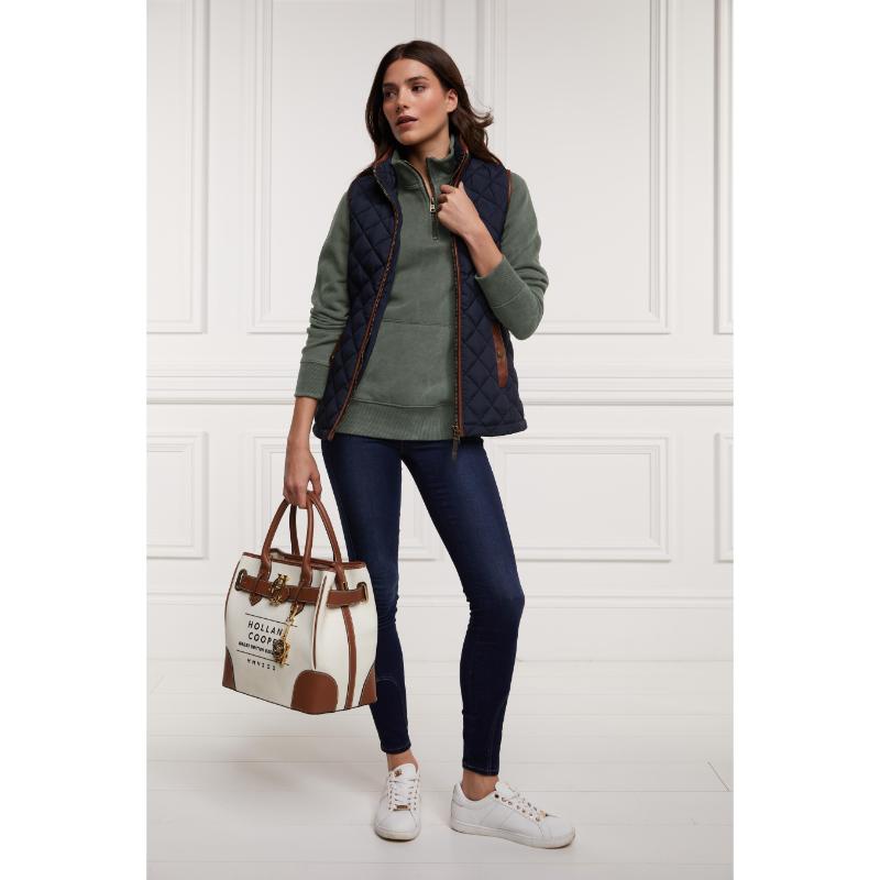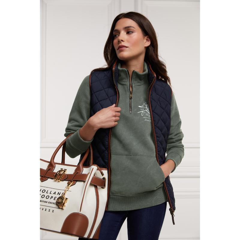 This Holland Cooper Crest Zip Henley Ladies Jumper is crafted from a super-soft cotton blended washed fabric for ultimate comfort and style. Featuring a classic fit, quilted collar, large front kangaroo pocket, and signature HC crest on the chest, this jumper is detailed with antique brass zips for a timeless look.
