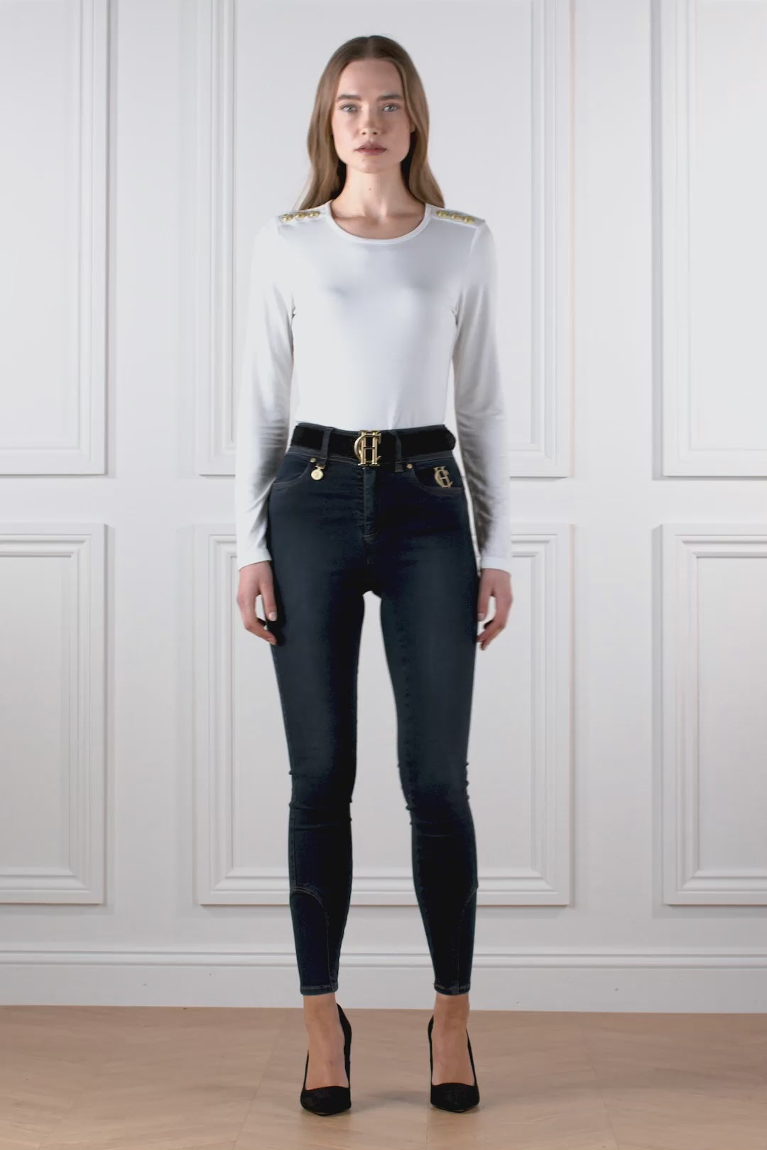 The Holland Cooper Ladies Jodhpur Jeans ingeniously combine the high-waisted, sculpting fit of the jodhpur, with the style and versatility of a jean creating a truly unique style. Crafted from contouring fabrics which flatter your figure with added stretch for all-day comfort. Complete with colour fast technology, iconic Holland Cooper hardware and signature embroidery.