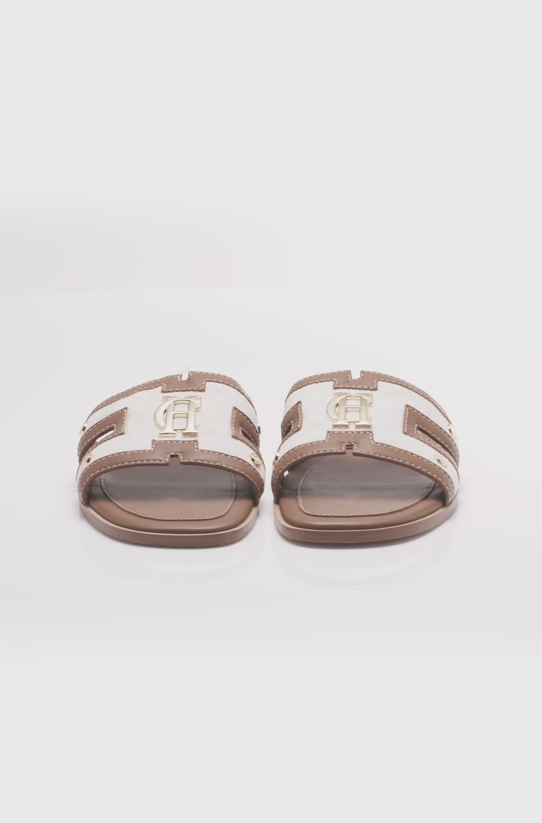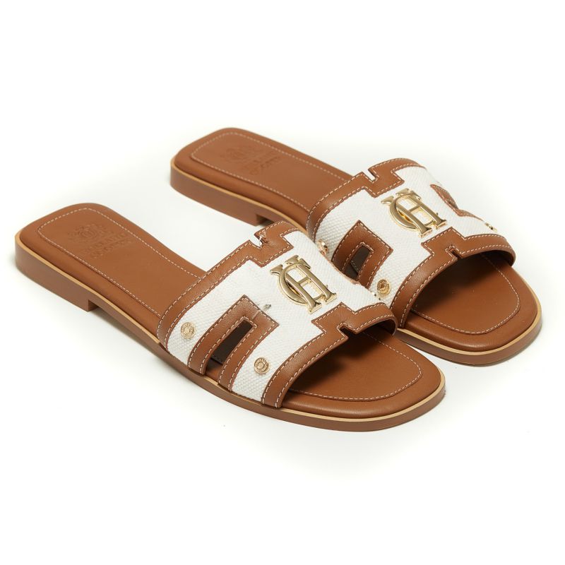 Holland Cooper Monogram Ladies Slides - Tan Canvas