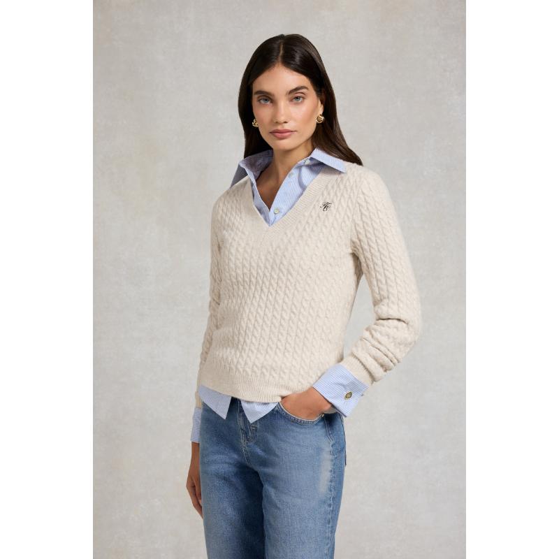 Holland Cooper Polly Ladies V-Neck Knit Jumper - Barley