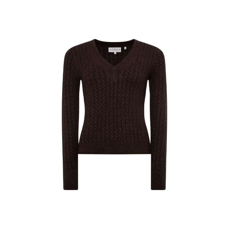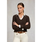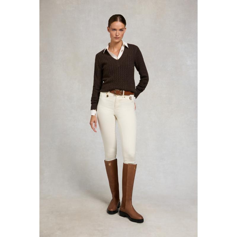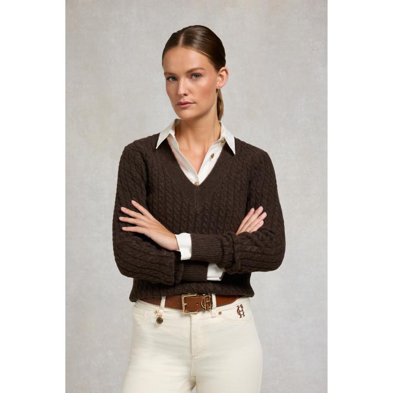Holland Cooper Polly Ladies V-Neck Knit Jumper - Chocolate