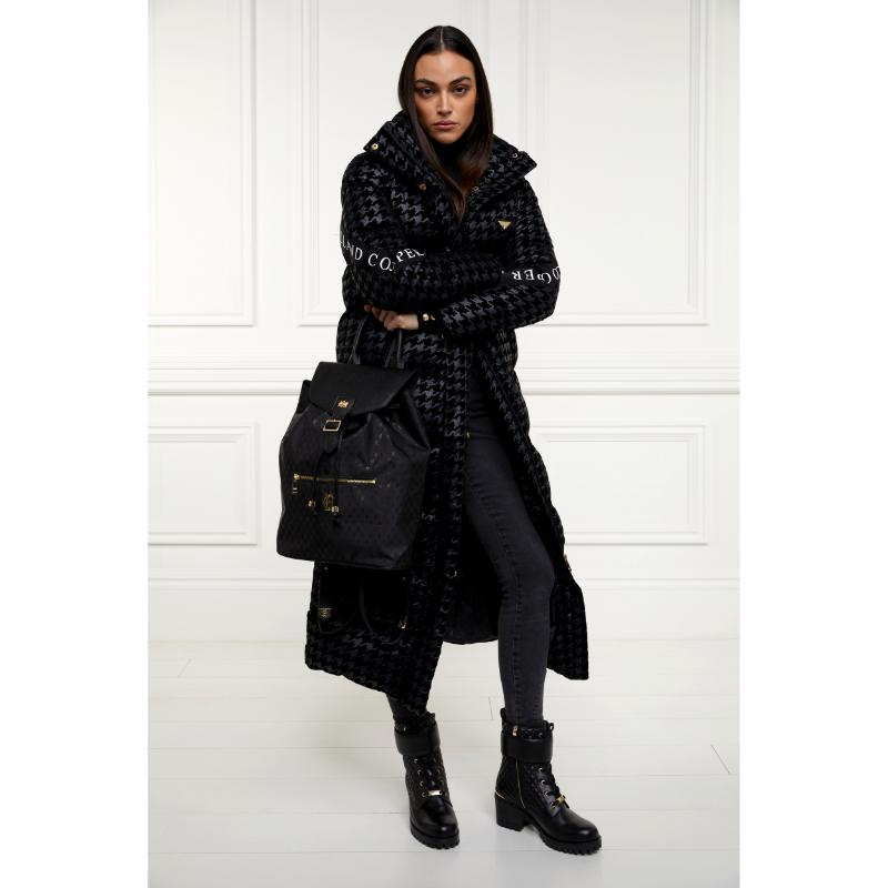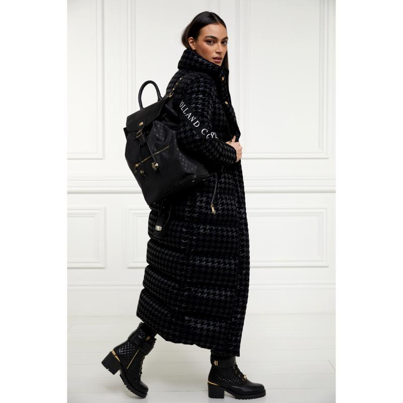 The Holland Cooper Regency Backpack offers a sophisticated blend of style and functionality. Featuring a fully branded, showerproof monogrammed upper, it provides reliable protection against the elements. Its fully lined interior keeps your belongings dry and secure, while premium recycled PU trims and signature HC hardware reflect a commitment to sustainable luxury. Designed for all seasons, this backpack embodies practical elegance with expert craftsmanship.