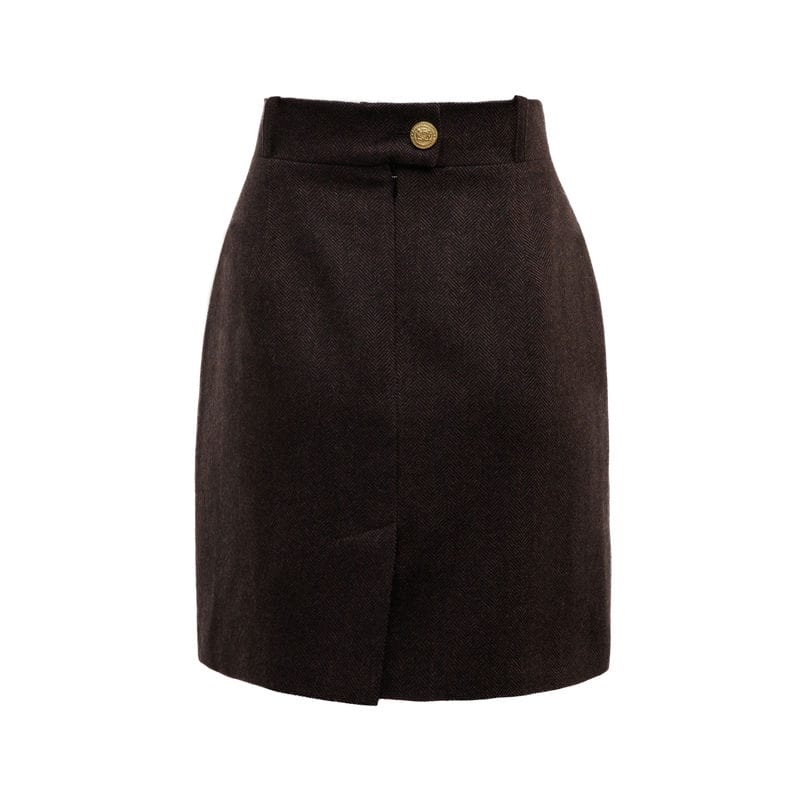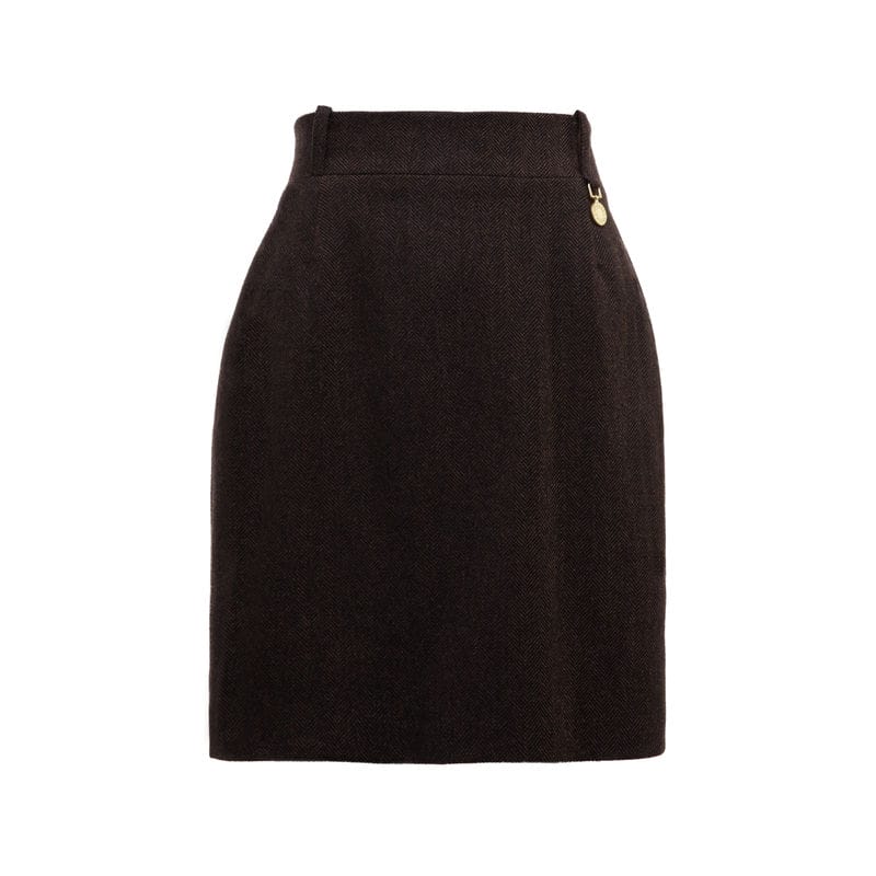 Holland Cooper Regency Ladies Tweed Skirt - Chocolate Herringbone