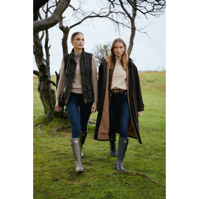 The Sherpa Lined Regency Ladies Wellingtons from Holland Cooper are a fresh take on classic wellington boots and are quite possibly the most stylish wellies we have ever seen! Fashionable and functional, these boots are fully waterproof and offer superb protection from the elements. Hand crafted from 17 hand cut pieces of natural rubber, featuring a traction grip sole for rough terrain and lined with a super soft thermal Sherpa for warmth and comfort. The side gusset allows for an adjustable fit, making them suitable for a range of calf sizes. Complete with the classic Holland Cooper gold hardware for a stylish, eye catching look.