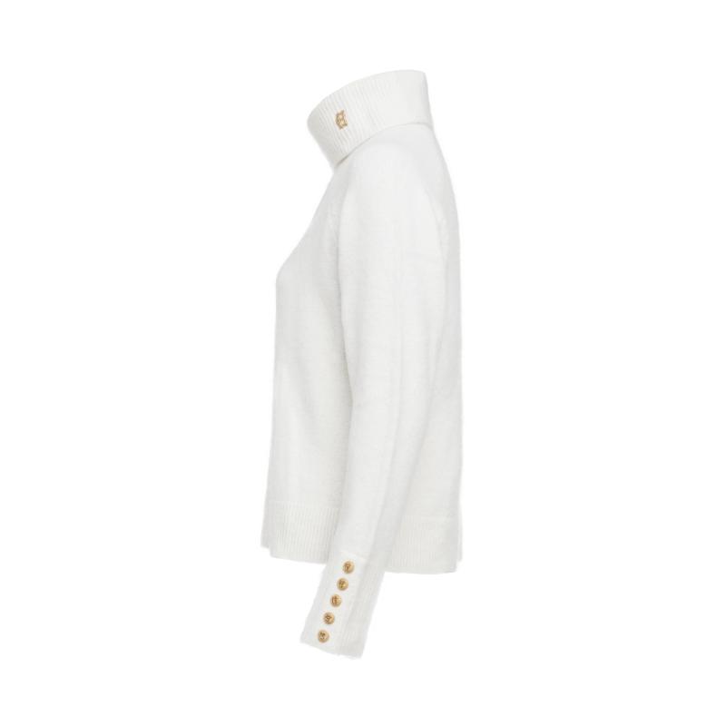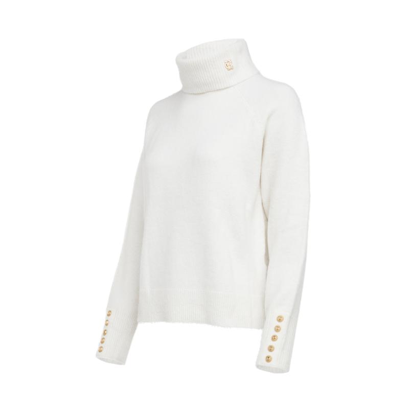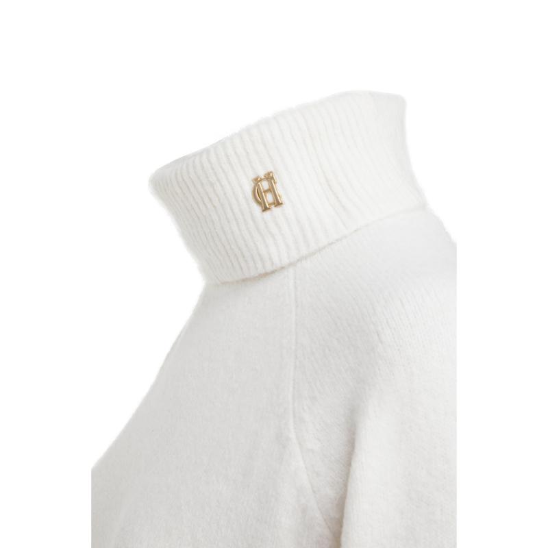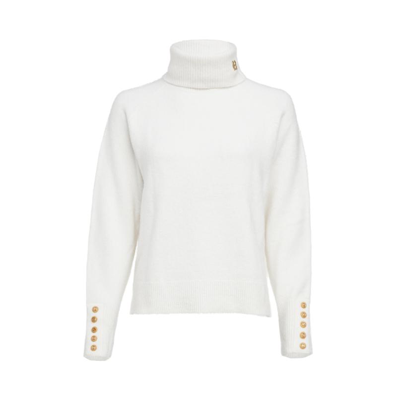 Elevate your winter wardrobe with the Holland Cooper Tori Ladies Alpaca Mix Knit Roll Neck Jumper. Crafted from soft, textured wool, this relaxed fit knit boasts voluminous sleeves and a ribbed cuff for added style and comfort. Complete with iconic gold HC hardware and a HC pin on the roll neck, this jumper is a must-have for any fashion-forward individual.