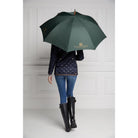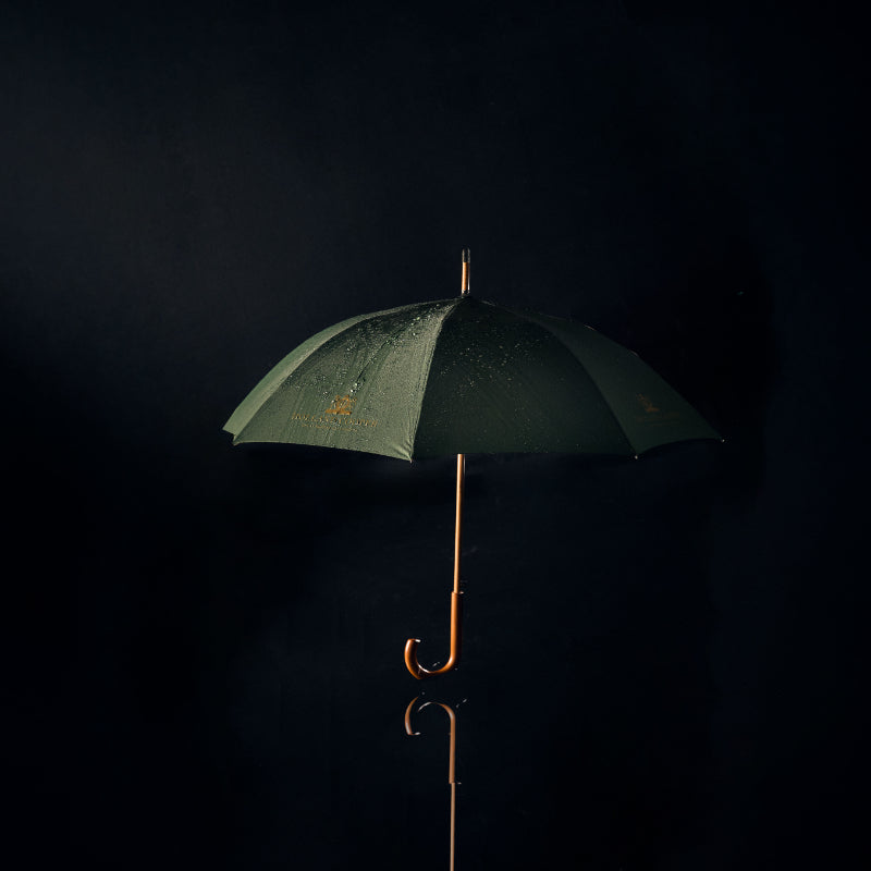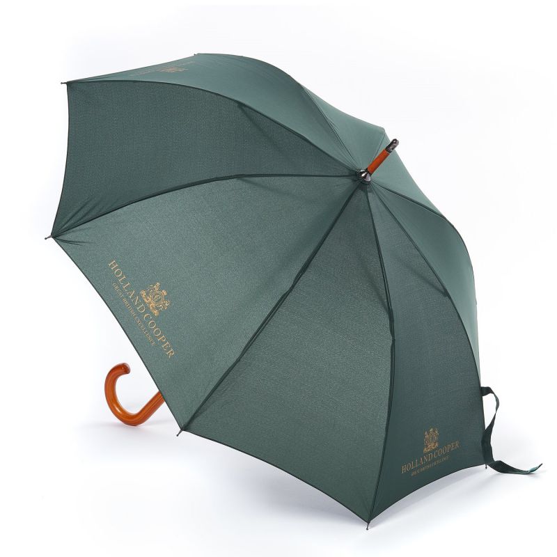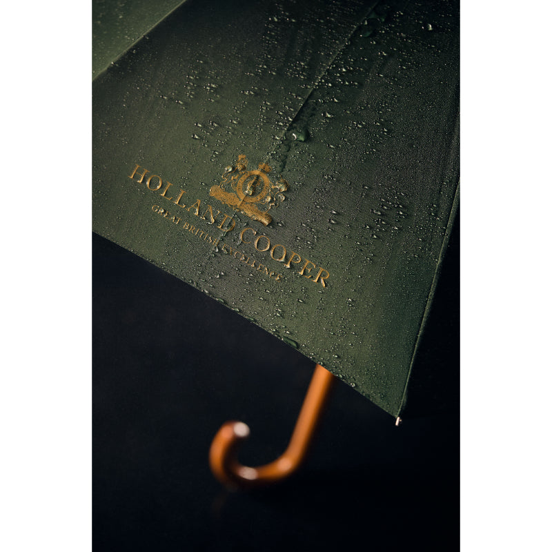 The Holland Cooper Umbrella is a stylish yet practical accessory that will prove it's worth again and again in the unpredictable British weather! The elegant design features a curved wooden handle, signature colouring and classic HC logo.
