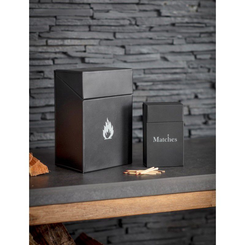 Accessorise your fireside with this charming Match Box, designed to hold a regular cardboard match box and look a whole lot more stylish. Crafted from powder coated steel with elegant lettering, this would make a great gift or just a fine home accessory for everyday use through the winter months.