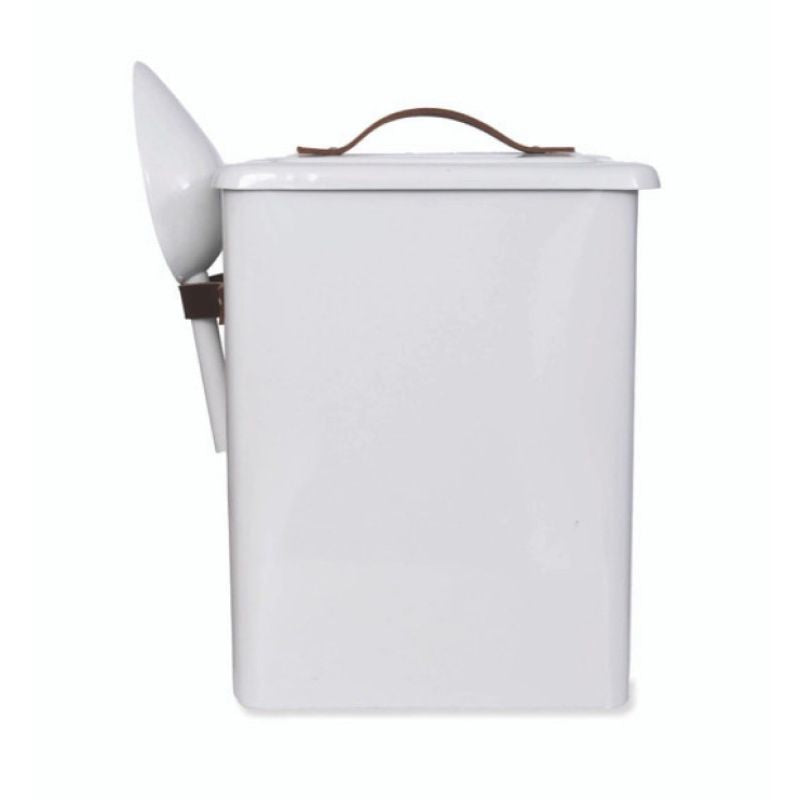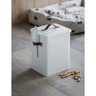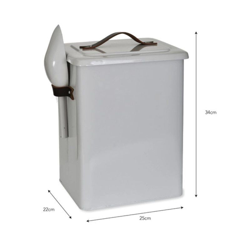 Pet food has never looked so stylish... The Stowell Medium Pet Bin is designed to store your pet's food whilst looking like a chic home accessory, with a leather handle and matching scoop. Crafted from powder coated steel and available in three different sizes to suit your four-legged friends.