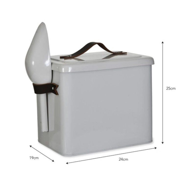 Pet food has never looked so stylish... The Stowell Small Pet Bin is designed to store your pet's food whilst looking like a chic home accessory, with a leather handle and matching scoop. Crafted from powder coated steel and available in three different sizes to suit your four-legged friends.