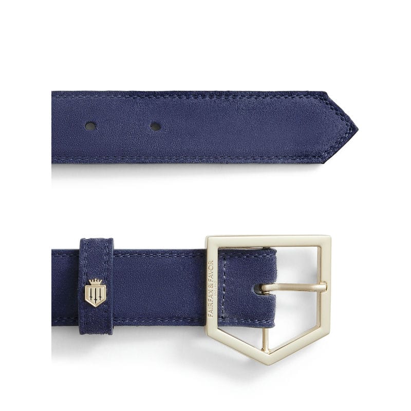The Fairfax & Favor Felbrigg Ladies Suede Belt is the perfect choice for making a stylish statement. Crafted with Fairfax's iconic oversized gold chevron buckle and high-quality suede material, this sturdy belt is perfect for accompanying jeans in any season. Showcase your style in comfort and class.