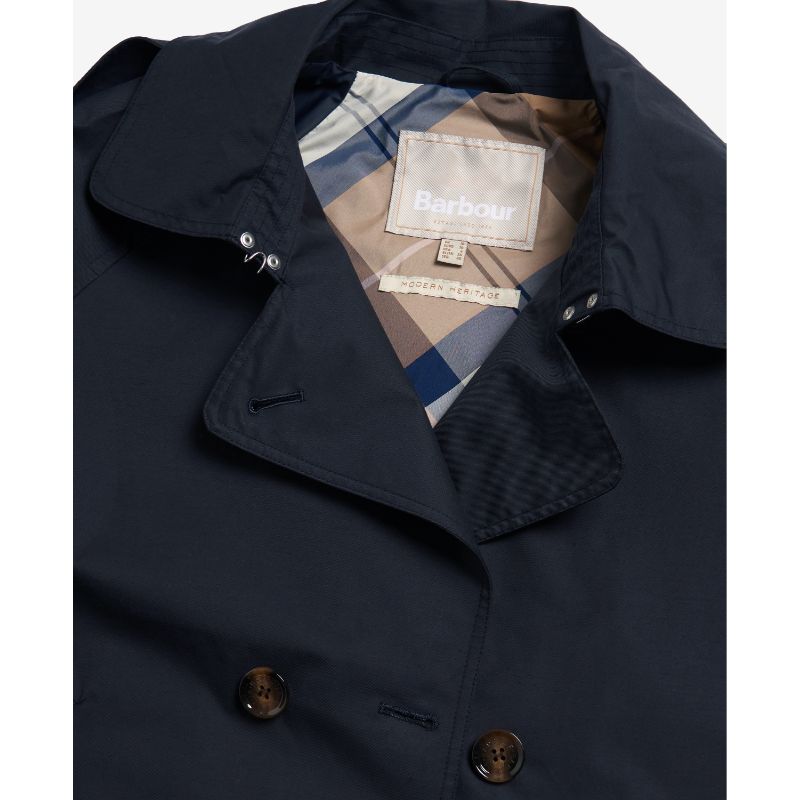 This classic Barbour Annie Ladies Jacket is the perfect combination of fashion and practicality. The lightweight, showerproof trench is renowned for its style, with features like shoulder straps, storm flap, adjustable cuff tabs, and a bias-cut classic tartan lining. With the double-breasted, mock-horn button design, you can stay dry during showers whilst looking chic.