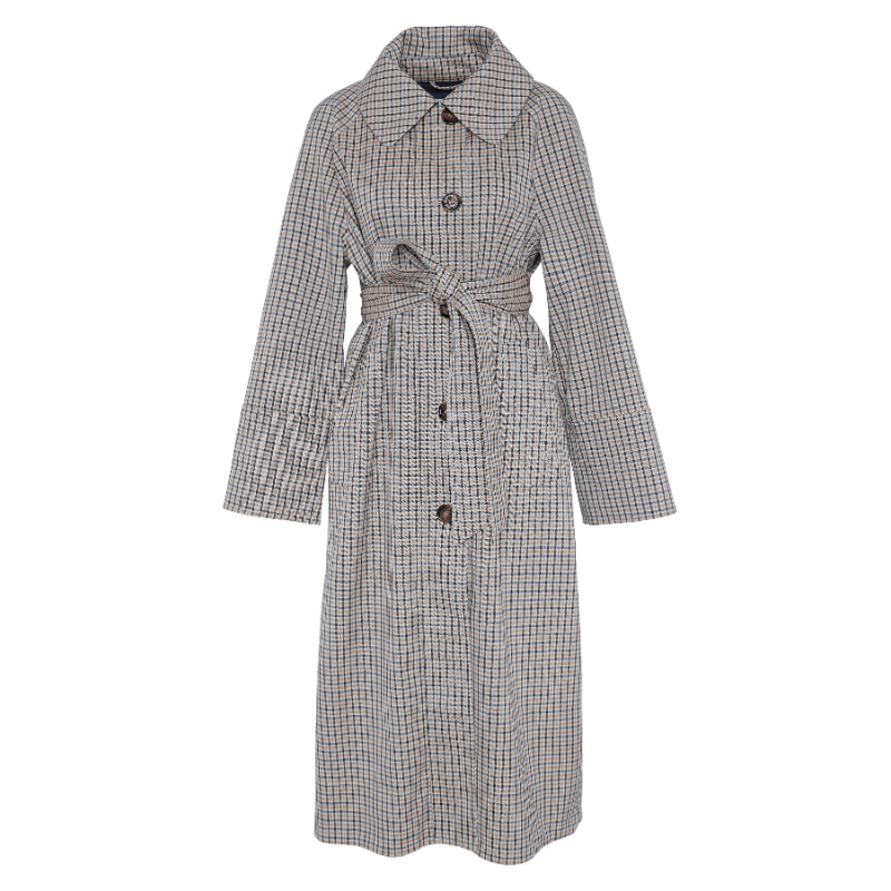 Barbour Beatrix Check Showerproof Ladies Trench Coat - Sky Micro Check