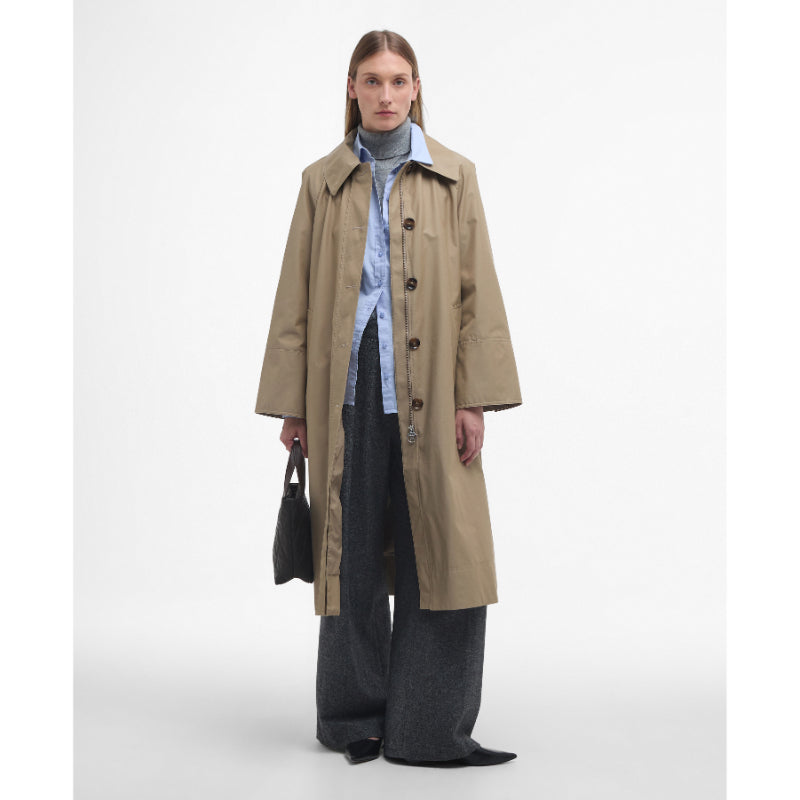 Introducing the Barbour Beatrix Trench Coat - redesigned to withstand the ever-changing British weather. With a drawcord for a customizable fit and oversized cuffs and collar, this iconic style exudes timeless sophistication. Stay stylish and protected in the Barbour Beatrix Showerproof Trench Coat.