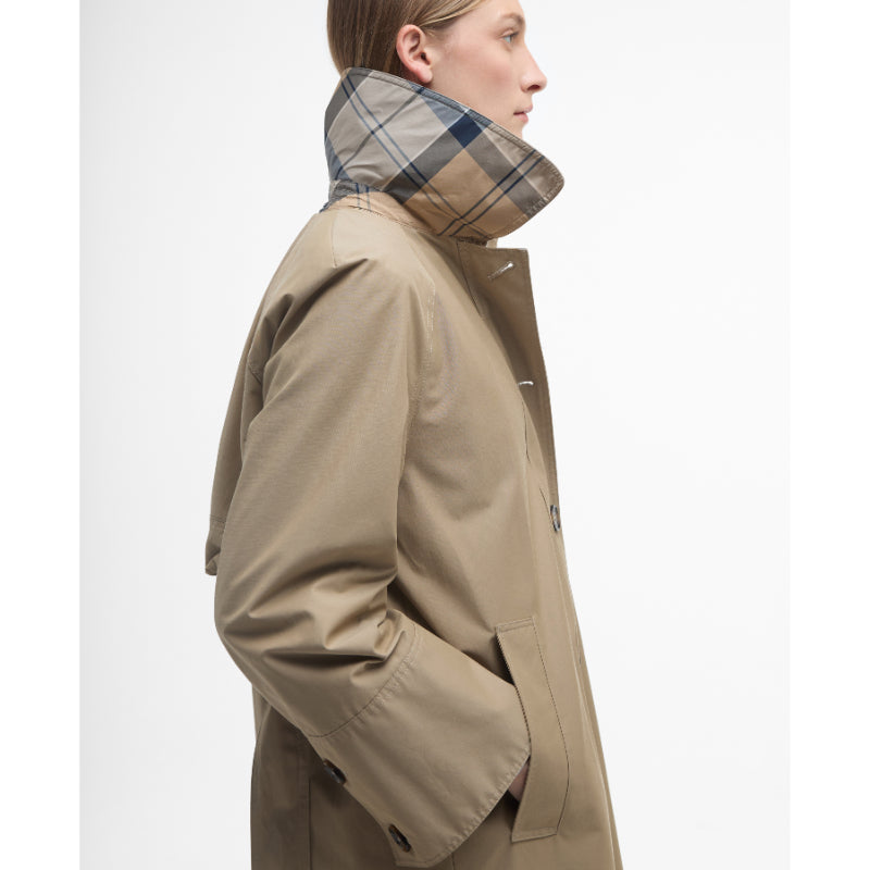 Barbour Beatrix Showerproof Ladies Trench Coat - Light Trench/Sky Dress Tartan