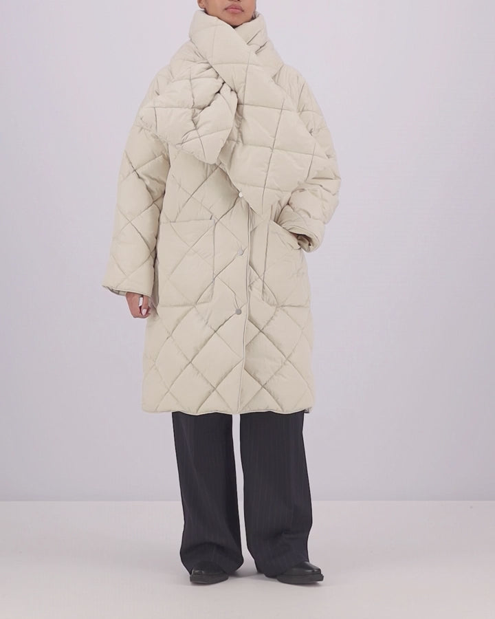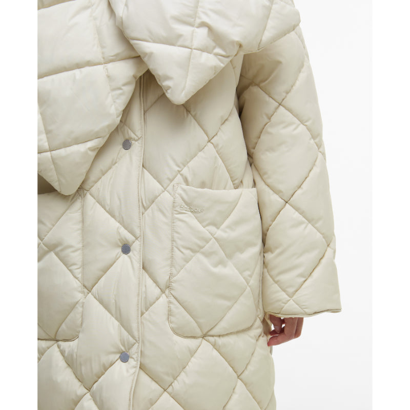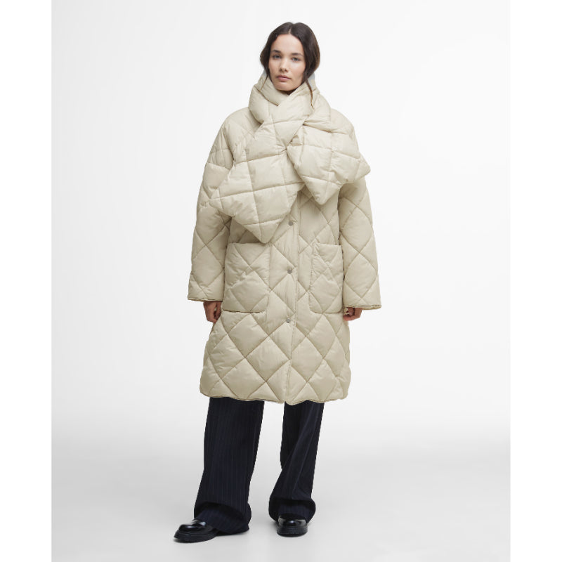 Approach the colder months with style and comfort in the Barbour Brigitte Puffer Jacket and scarf. Featuring iconic diamond quilting, oversized pockets, and a cocoon silhouette, this jacket guarantees to be an eye-catcher and offers optimal protection from the elements. Complete with a co-ordinating oversized detachable scarf.