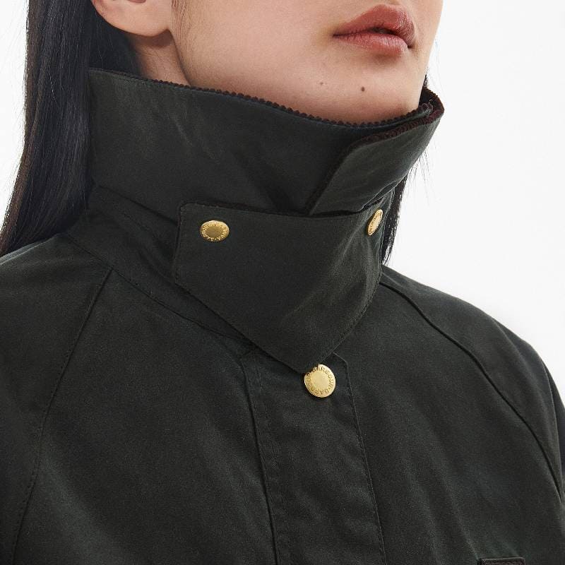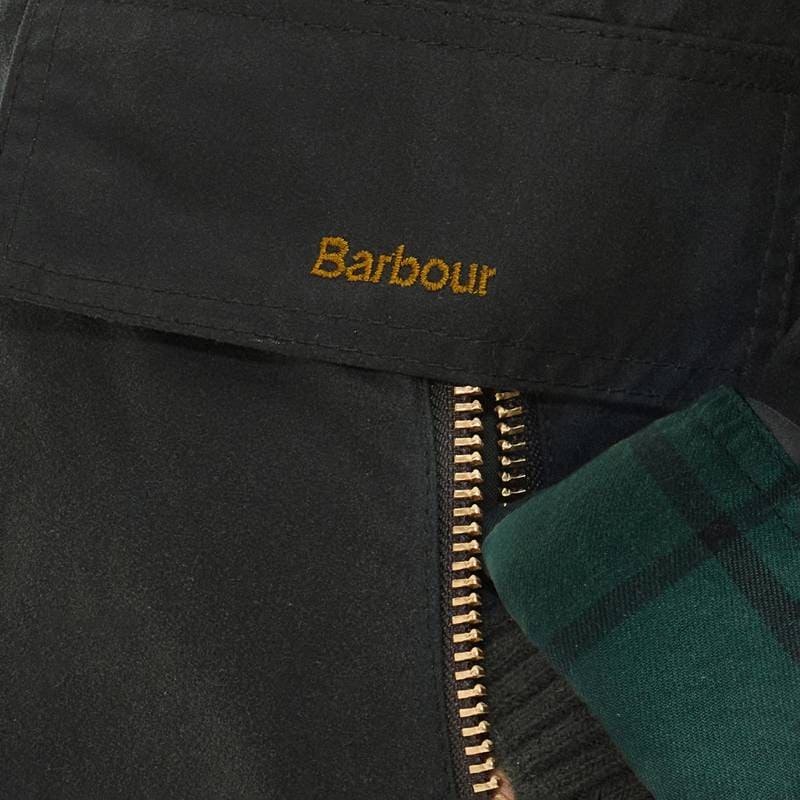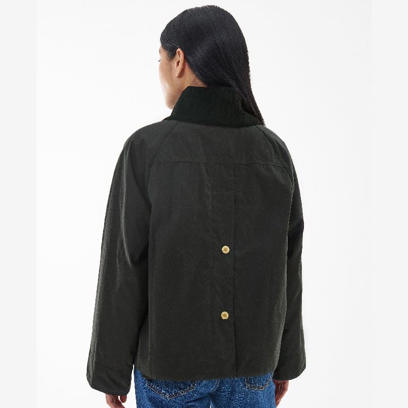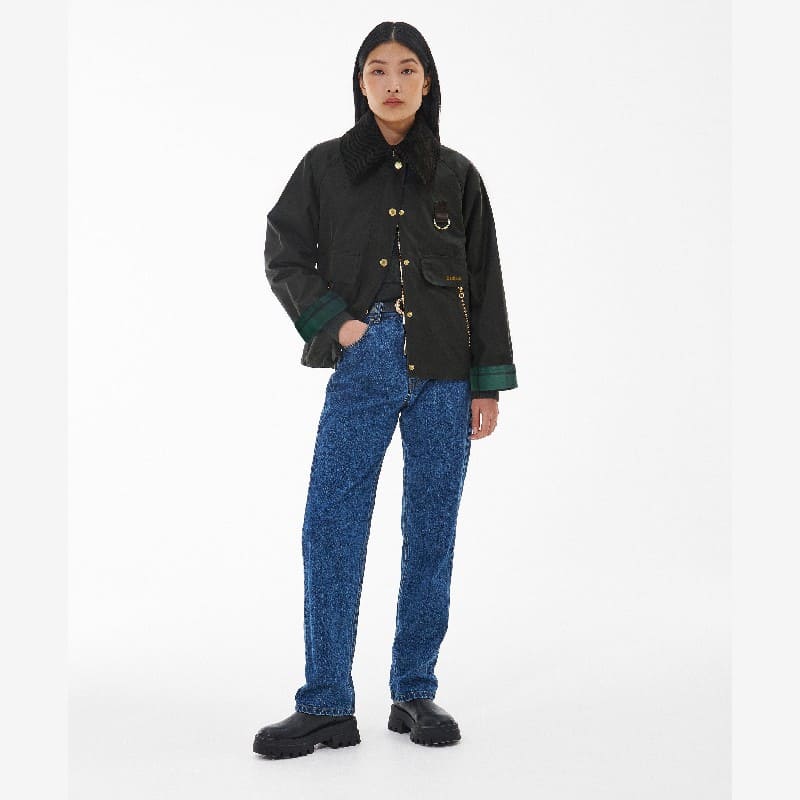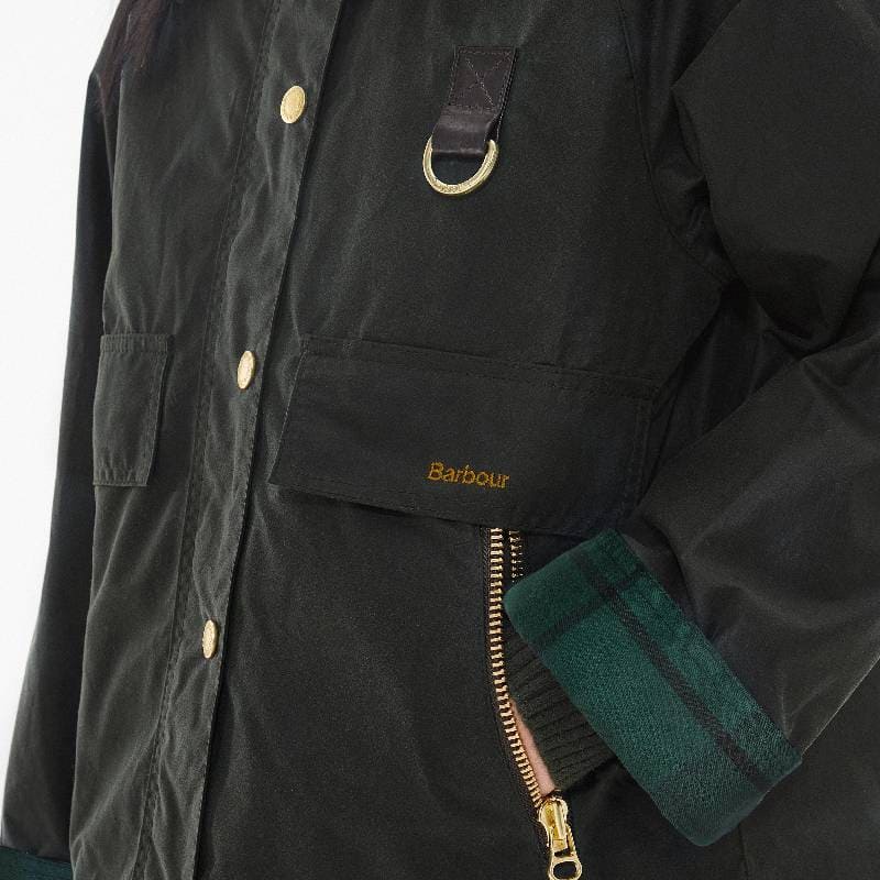 Barbour Catton Ladies Wax Jacket - Black/Black/Sage Tartan
