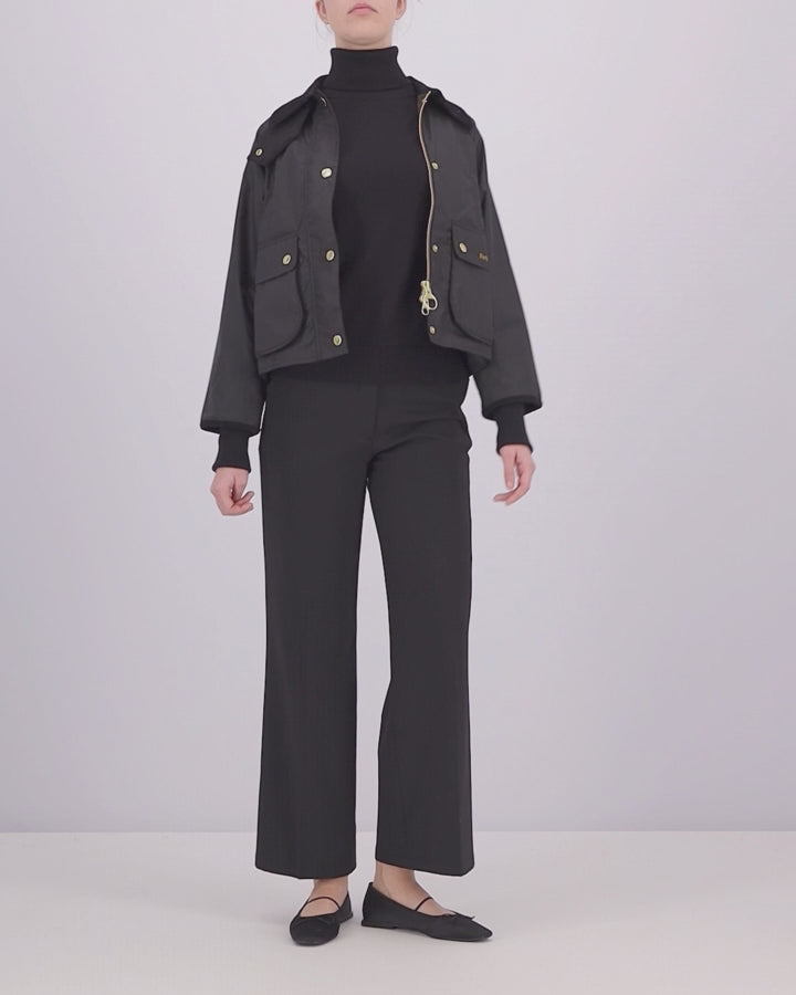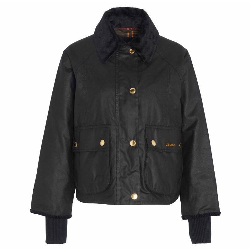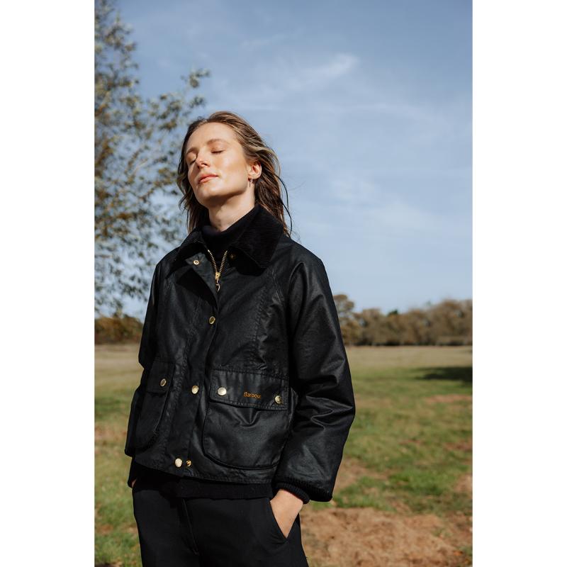 Barbour Cropped Beadnell Ladies Wax Jacket - Black/Classic