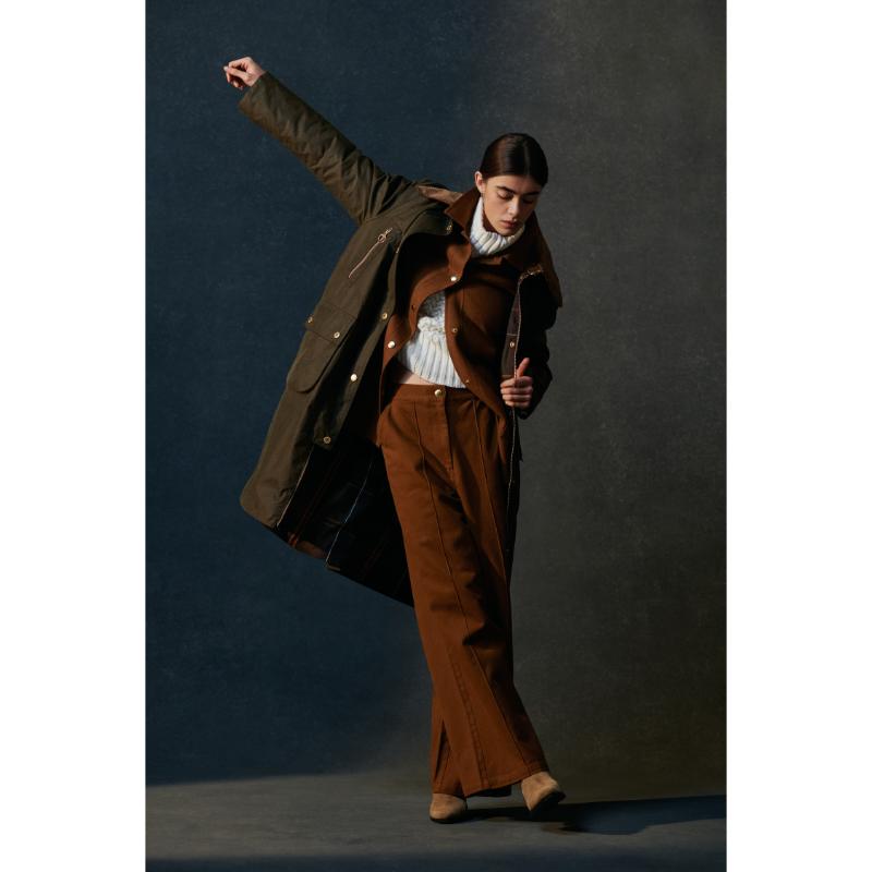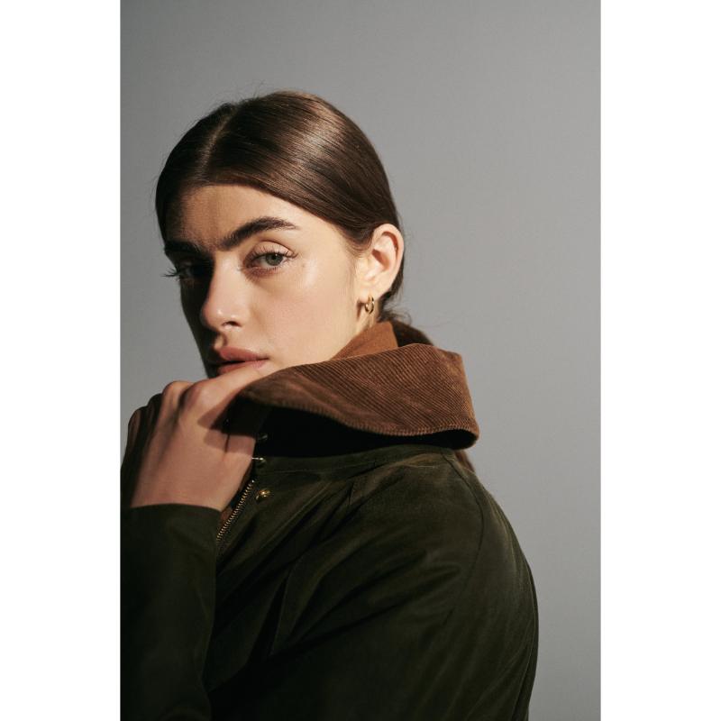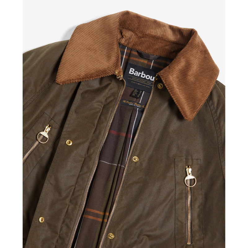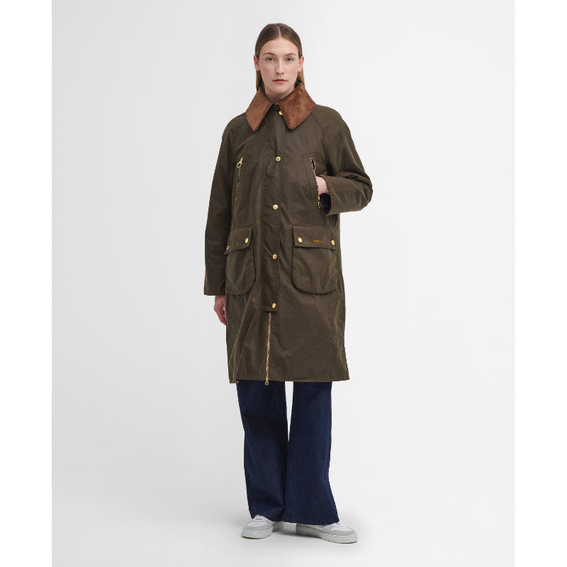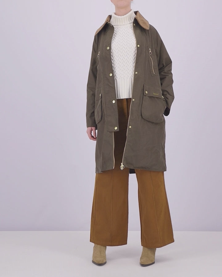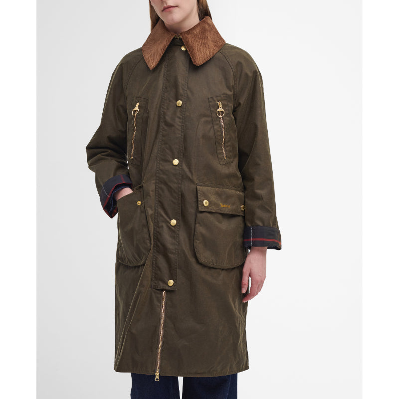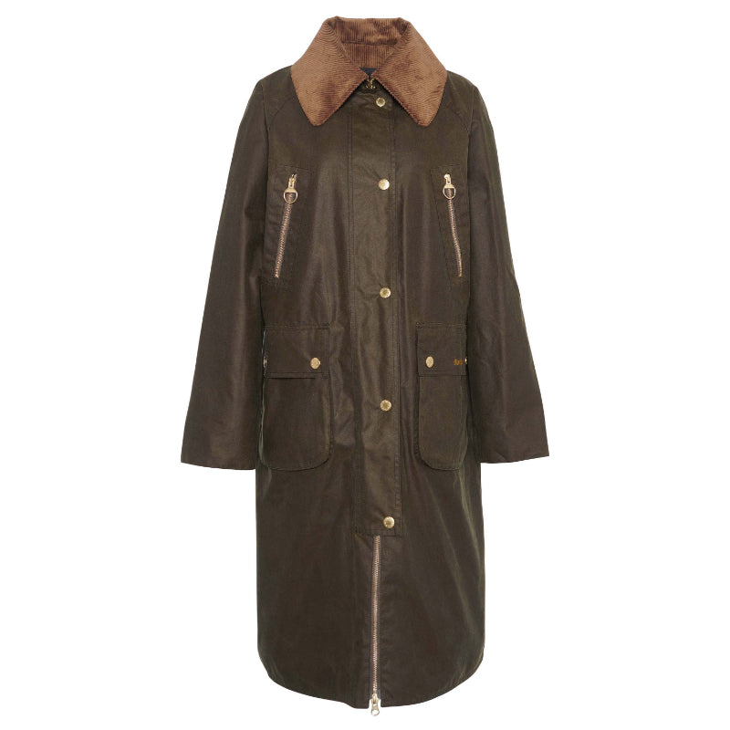 Expertly crafted using 6oz Sylkoil waxed cotton, the Barbour Ebberston Jacket combines a longline silhouette and oversized cord collar for a modern yet timeless look. Featuring a large back vent and chunky zip pockets, this archive-inspired jacket is a functional and stylish choice for chilly weather. Complete with the classic Barbour tartan under the cuff.