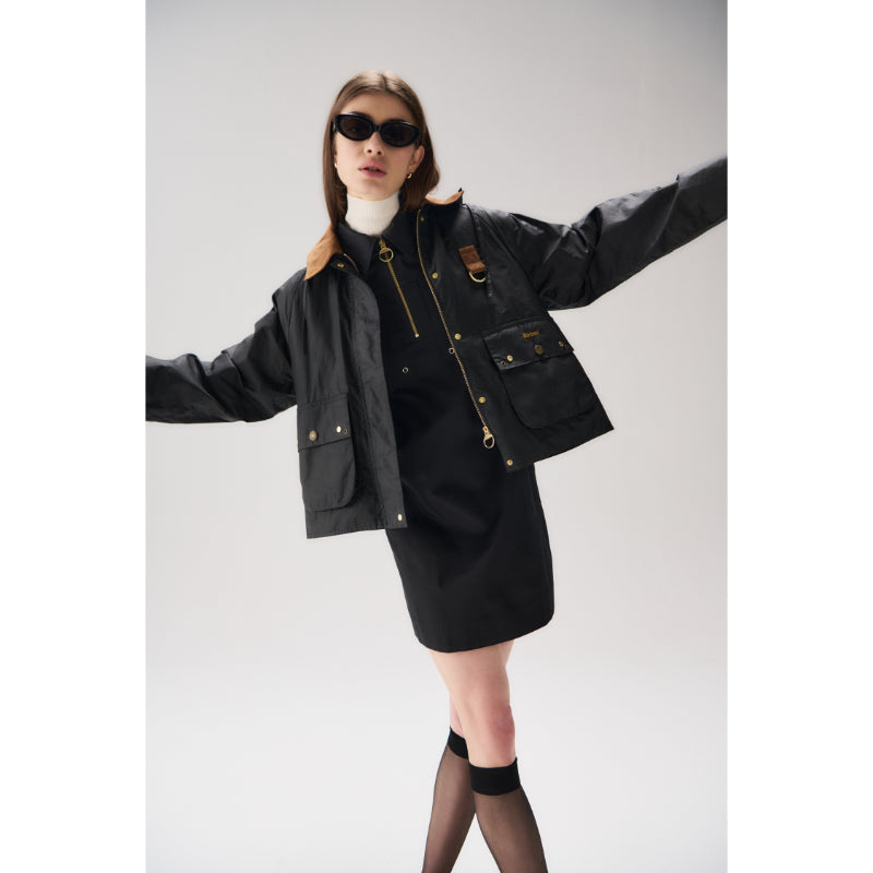 Barbour Erma Ladies Wax Jacket - Black/Ancient Tartan