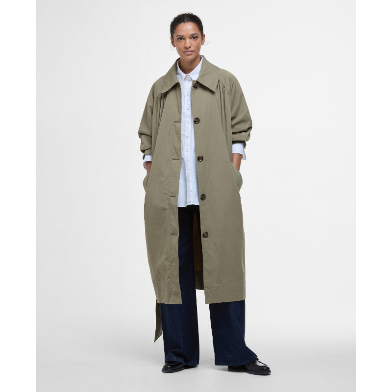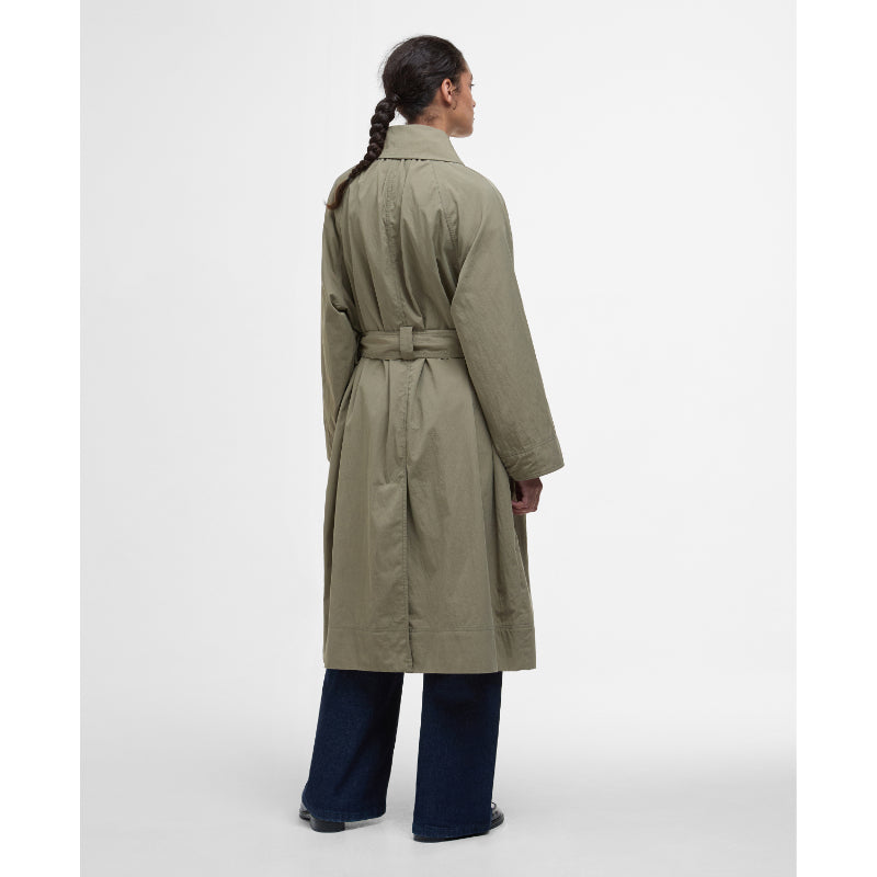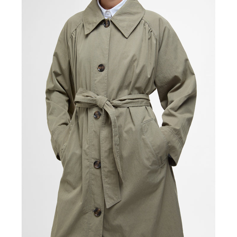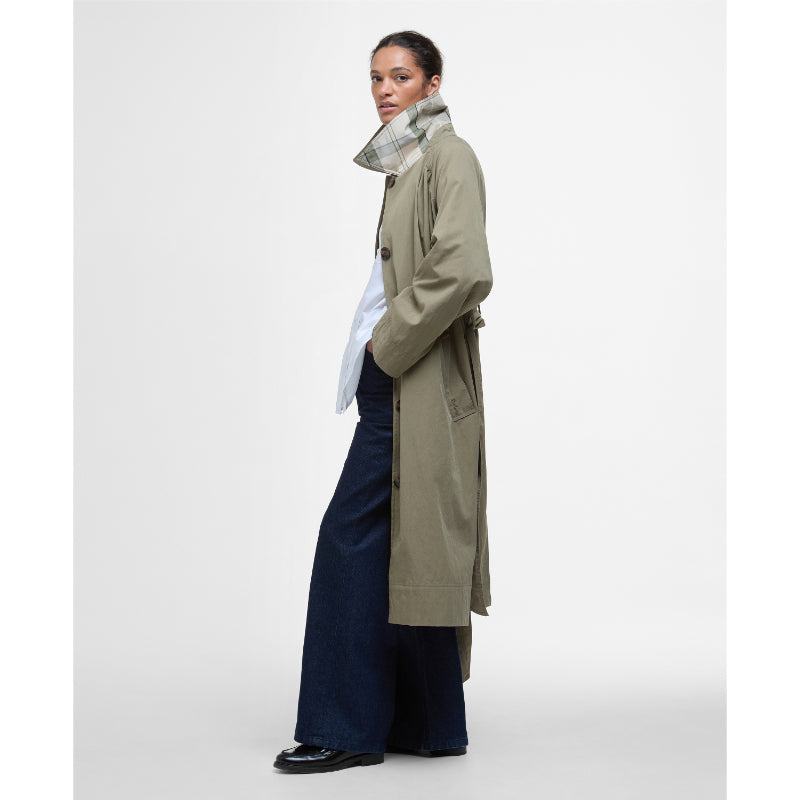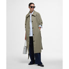 Barbour Garbo Ladies Showerproof Trench Coat - Dusky Green/Rosemary Tartan