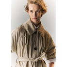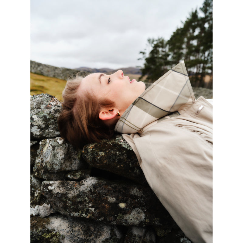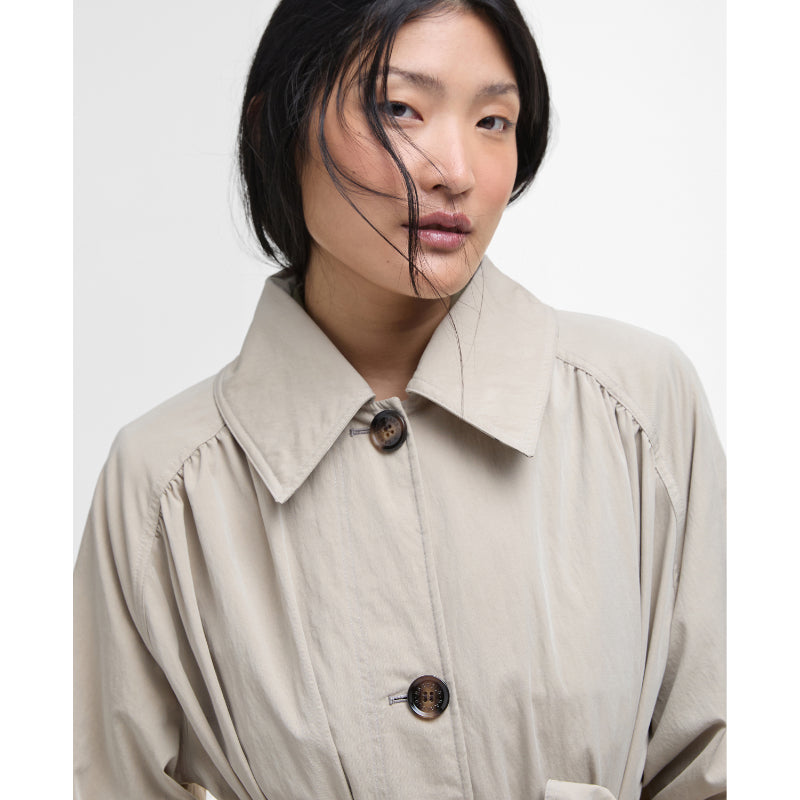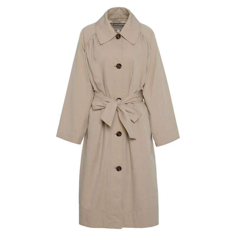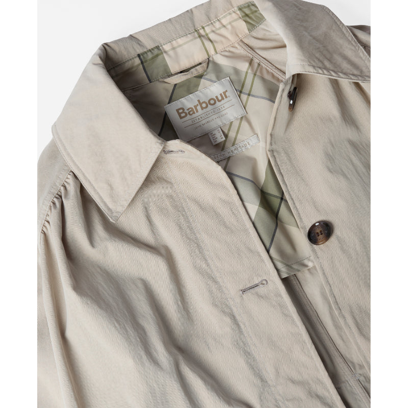 Barbour Garbo Ladies Showerproof Trench Coat - Light Sand/Rosemary Tartan