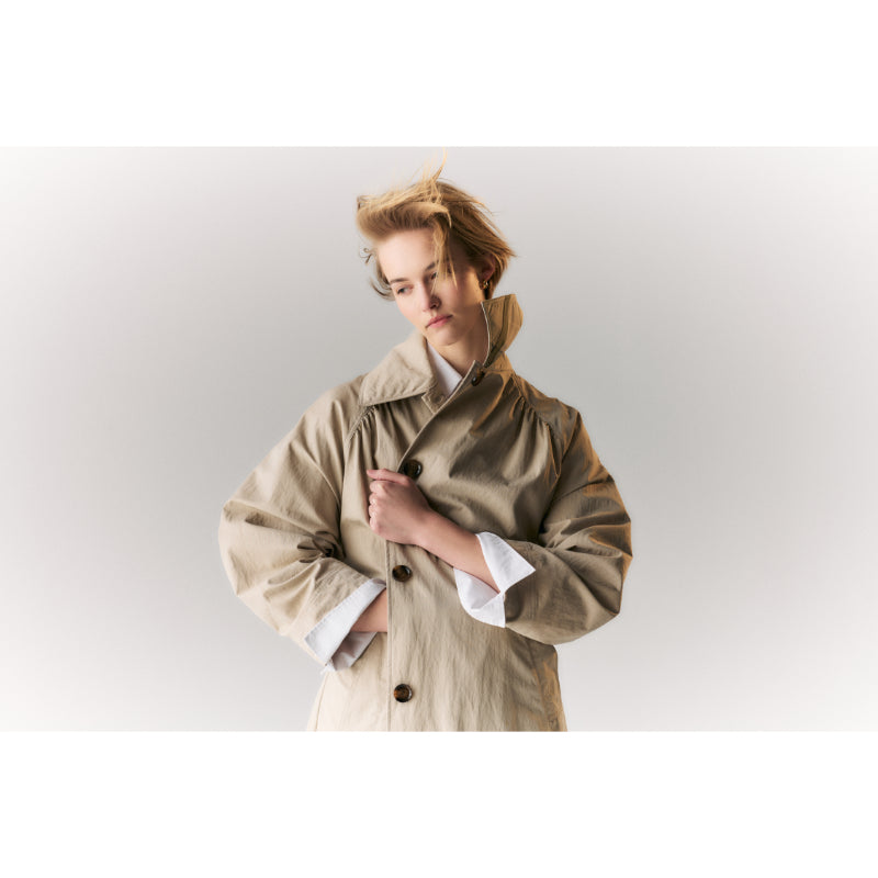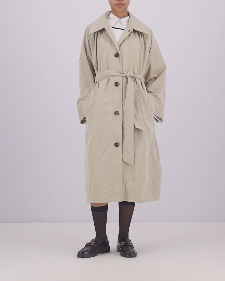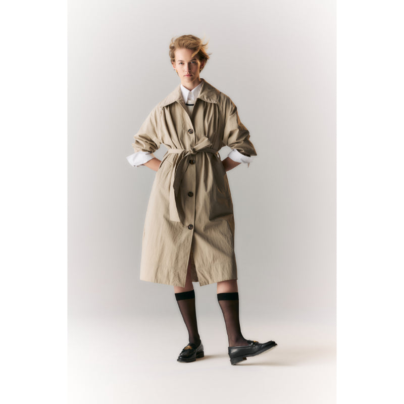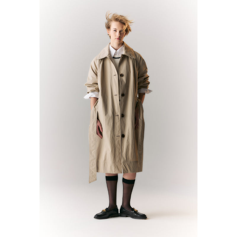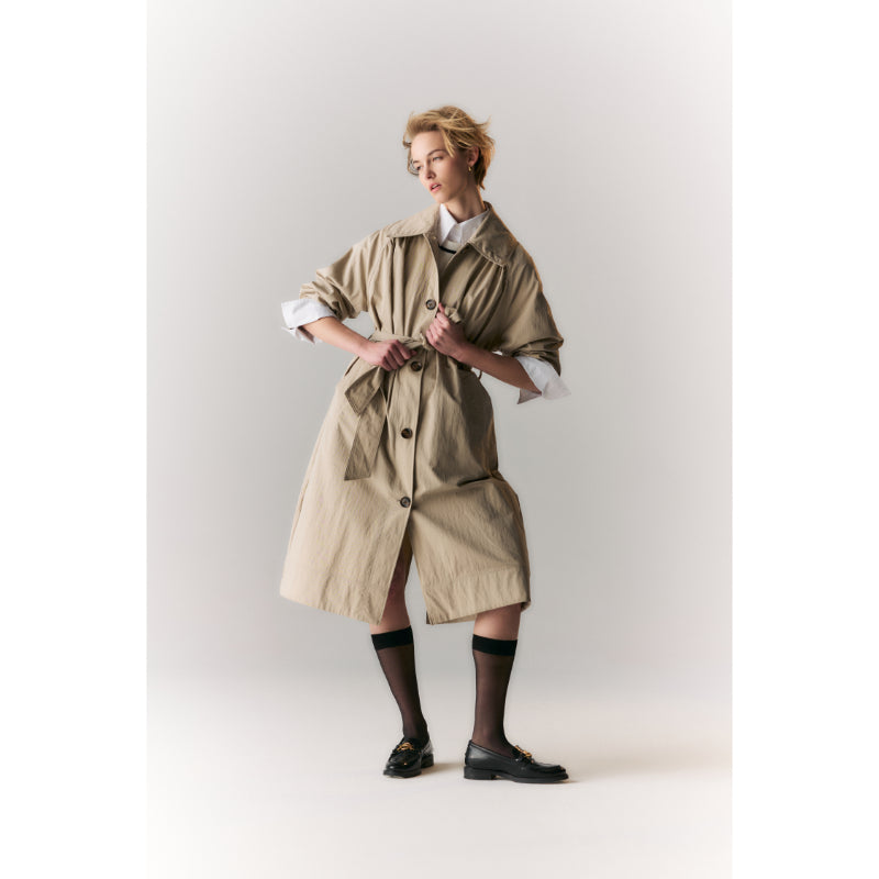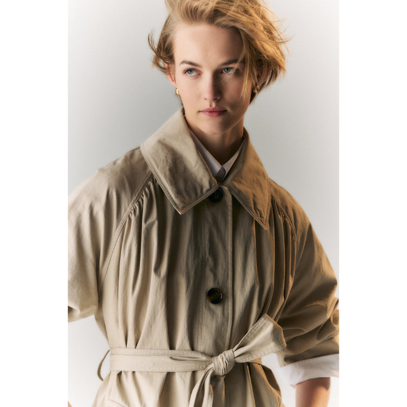 Expertly crafted with a draped single breasted design and a tie waist belt, this Barbour Garbo Ladies Showerproof Trench Coat is perfect for adding a touch of elegance to your wardrobe. With a centre front button fastening and welt pockets, it offers both functionality and style. The finishing touch of tartan bias buggy to the back neck adds a unique and stylish touch.