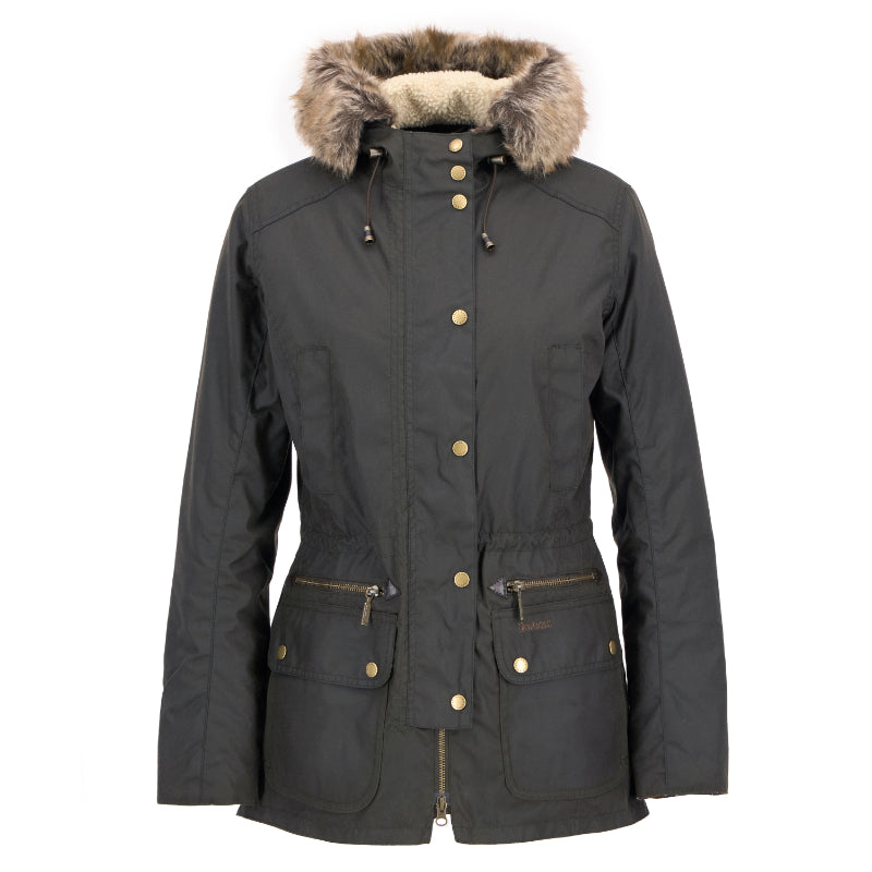 Barbour Ladies Kelsall Wax Parka Jacket - Olive / Classic