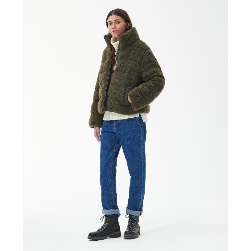 The Barbour Lichen Ladies Quilted Jacket is the perfect addition to your winter wardrobe. This short-length quilted baffle jacket is made from a very cosy teddy material and features an exposed zip front fastening and welt pockets for style and practicality. Stay warm and look great this season with this fashionable and warm jacket.