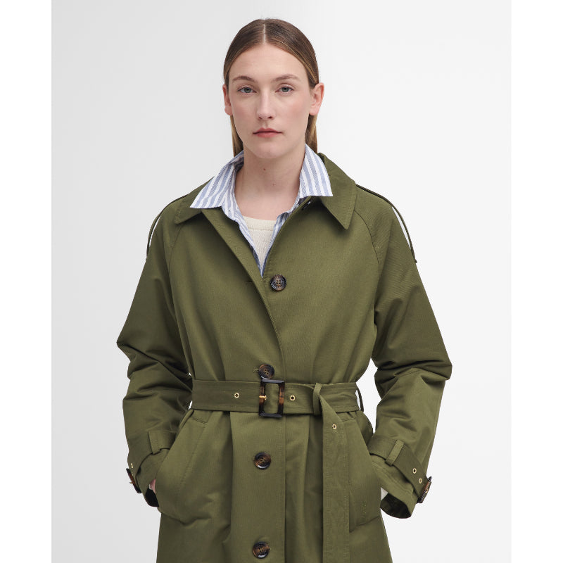 Barbour Marie Ladies Showerproof Trench - Dark Moss/Ancient Loden Tartan