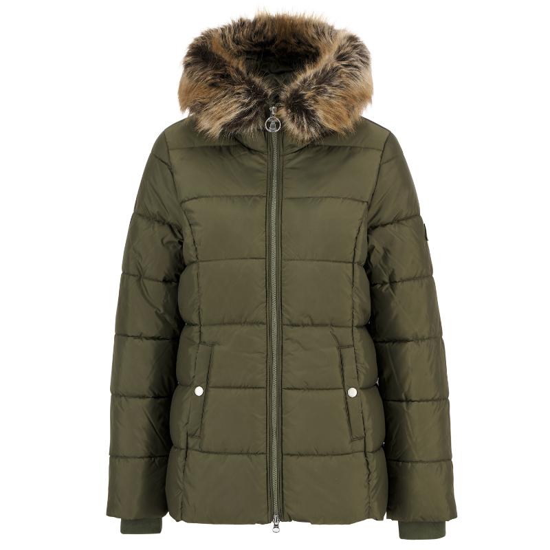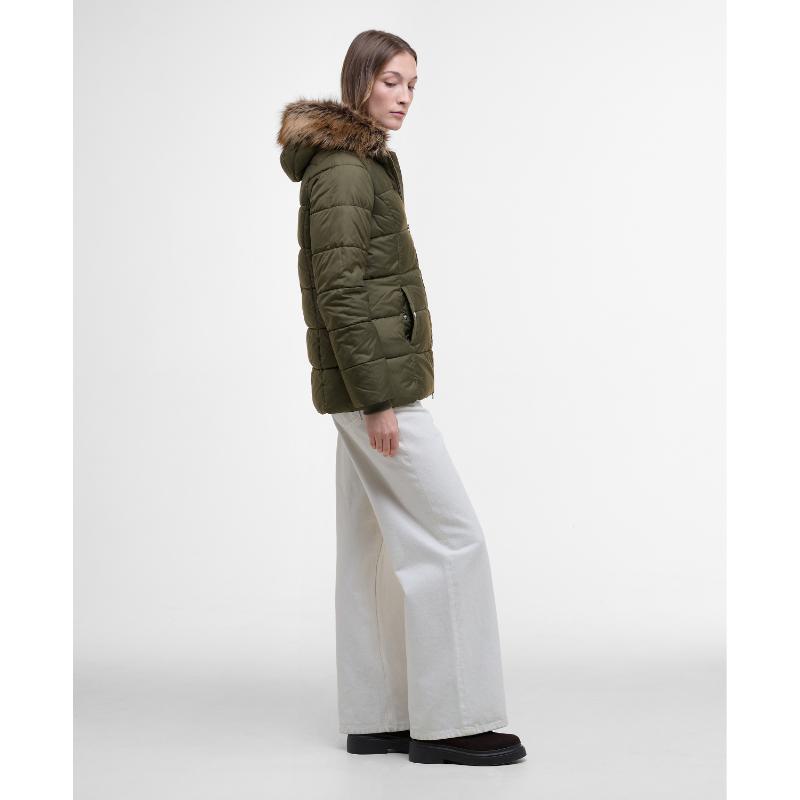 Barbour Midhurst Ladies Quilted Faux Fur Hood Jacket - Deep Olive
