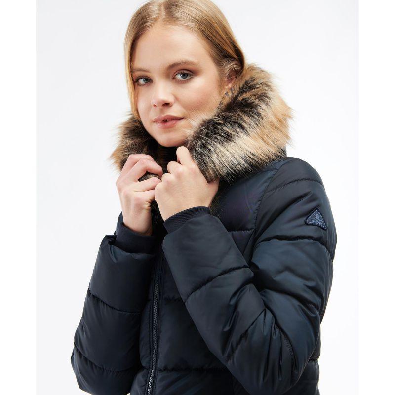 The Barbour Rosoman Ladies Quilted Jacket has contemporary looks and sustainable features that will set it apart from others vying for your attention this season. Crafted from recycled polyester and featuring a faux fur trimmed hood, this regular fitting, long length quilted jacket also comes complete with ribbed cuffs, all of which combine to ensure you'll be cosy and comfortable for when the temperatures drop. Machine washable.