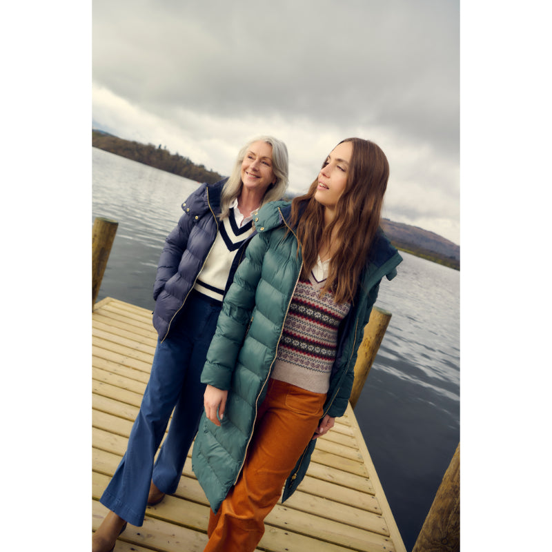 Experience ultimate comfort and protection with the Musto x Fairfax & Favor Odyssey Pertex Primaloft Ladies Jacket. Constructed with Pertex® Quantum for superior weather resistance and PrimaLoft® Thermoplume Cross Core insulation, it ensures warmth and dryness. Boasting an oversized hood and cozy pockets, this jacket pairs perfectly with Musto's chunky knits or 1/4 zip sweaters, as well as luxurious Fairfax & Favor shoes and accessories. Crafted from premium sustainable materials, this Women's Odyssey Pertex® Primaloft® Jacket has a shorter length for everyday wear during colder months. With its technical specifications and stylish design, you can trust that this jacket will keep you looking and feeling great.