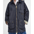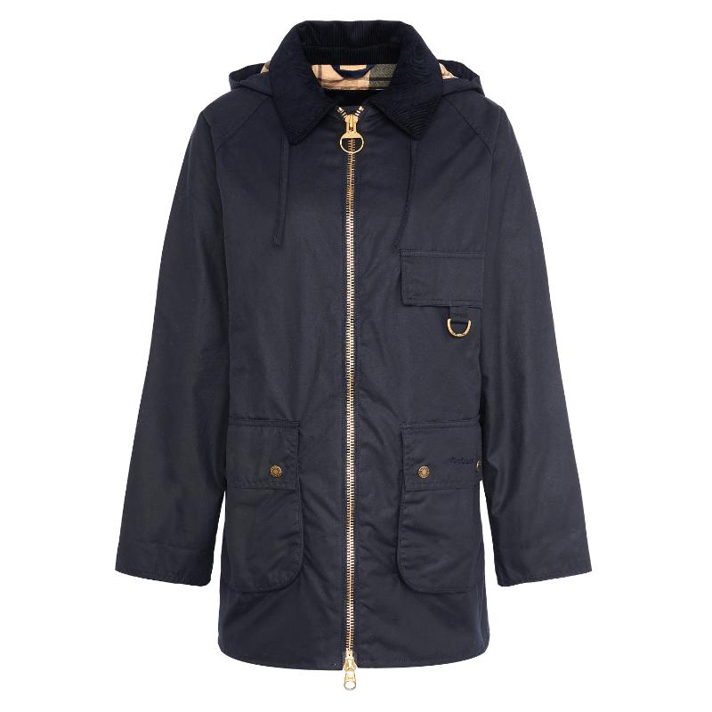 The Barbour Highclere Ladies Wax Jacket is a relaxed fit, mid length garment which will take pride of place on the family coat rack alongside your favourite caps and scarves. A detachable hood sits neatly around a corduroy collar, while there is storage space aplenty in either the lone chest pocket with D ring or two bellows pockets farther down. The patchwork tartan inner lining is a wonderful finishing touch to a sustainably crafted jacket which will be a go-to for many seasons ahead. Sponge clean only.
