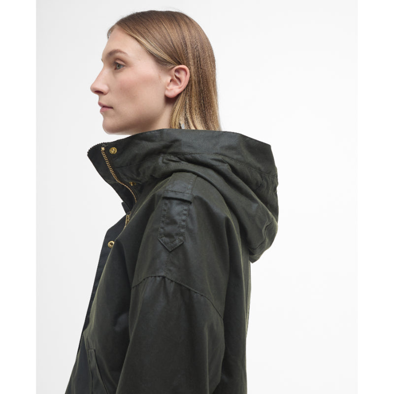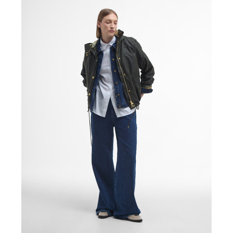 Embrace timeless style with the Barbour Inez Ladies Wax Jacket. This re-invented classic features a boxy, oversized silhouette, an oversized snorkel hood, and exaggerated wide sleeves for a dramatic touch. Made with 6oz Sylkoil waxed cotton and classic Barbour tartan lining, it's perfect for transitional weather.
