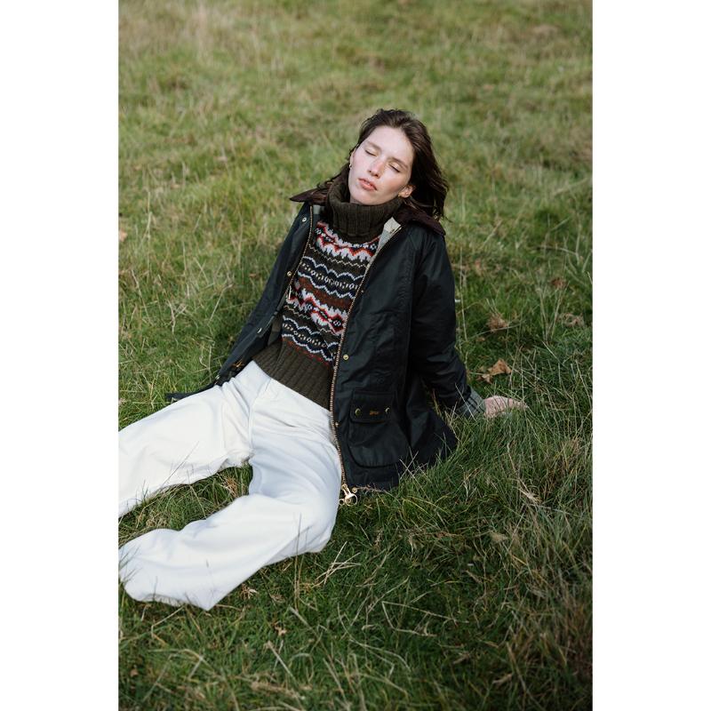 The Barbour Modern Beadnell Ladies Wax Jacket offers a fresh twist on the timeless Barbour Beadnell design. Retaining the iconic elements of the Beadnell, such as practical handwarmer pockets and a traditional cord collar. With a regular body shape and saddle pockets, this jacket is both fashionable and functional. The jacket is made of 100% waxed cotton for durability and includes the classic Barbour tartan lining for added warmth and heritage. It also features a drip strip and a removable storm collar to keep you protected from the elements. Perfect for any outdoor adventure.
