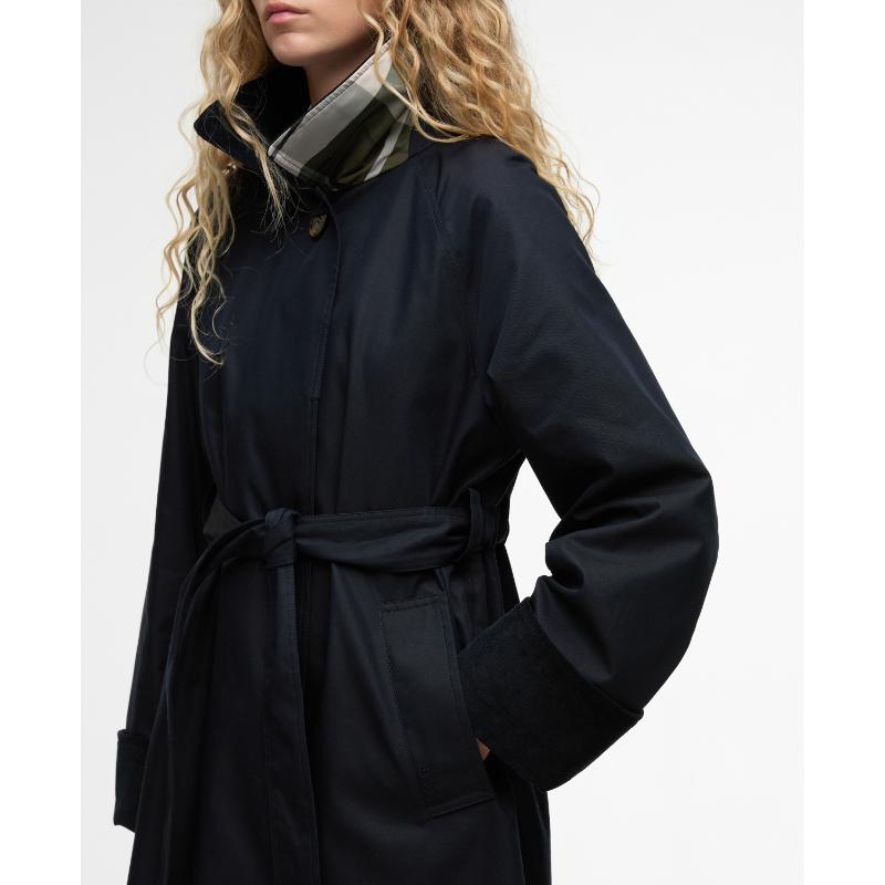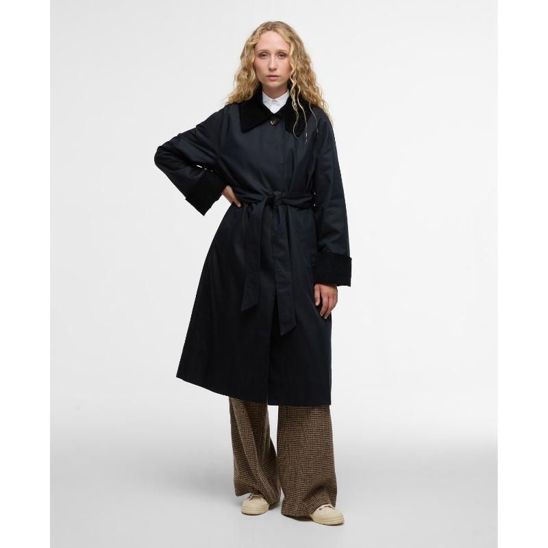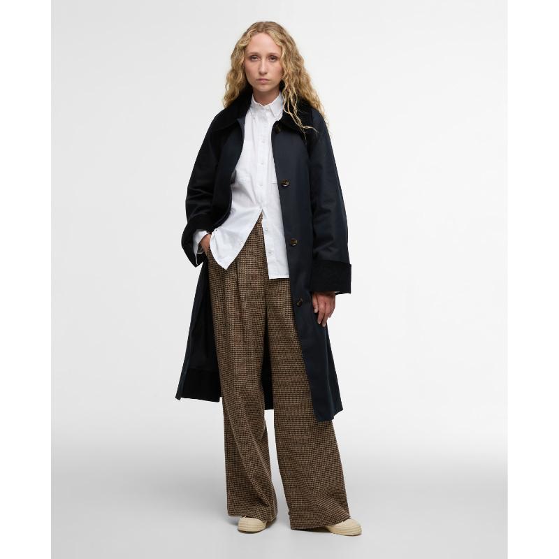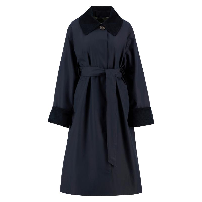 This longline trench coat represents a masterclass in understated sophistication. Its relaxed proportions and showerproof construction balance contemporary ease with enduring style, whilst deep tonal cord detailing at the cuffs and collar elevates the design with textural refinement. The substantial front button and concealed fastening provide secure closure, complemented by a self-tie belt that permits customisable fit and orchestrates elegant back ruching. A quintessential investment piece that transcends seasonal trends, delivering versatile layering potential and polished styling across diverse wardrobes and occasions.