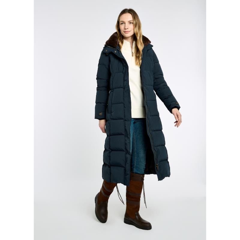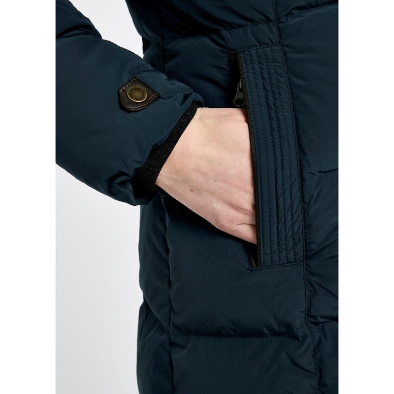 The Dubarry Aldborough Ladies Down Coat is a long and warm coat designed to keep you comfortable and stylish. With a four-layer construction for down-proof function and a warm, technical down fill weight of 260g/m², this coat is perfect for any weather. Its removable hood and faux-fur inner collar add a touch of luxury and versatility. Plus, with a two-way YKK centre front zipper and hidden inner knit cuff, you'll stay cosy and dry all day long.