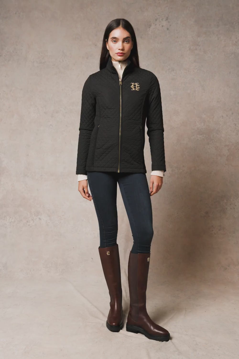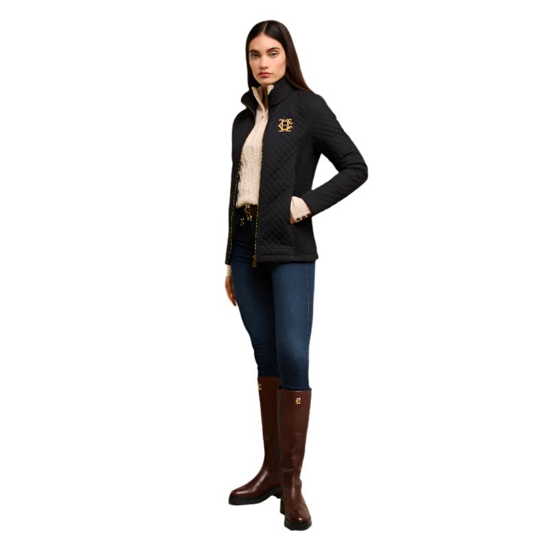 Elevate your wardrobe with the Holland Cooper Cambridge Ladies Jacket. Designed with a classic slim fit, this timeless diamond quilted jacket offers both comfort and a flattering silhouette. The faux suede trim, micro-scale diamond quilting, and appliqué bullion badge add sophisticated and elegant details. Stay warm and stylish with this functional and fashionable jacket.