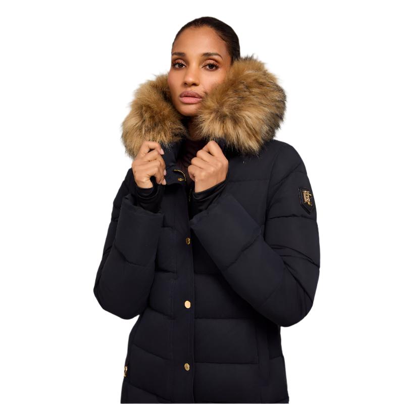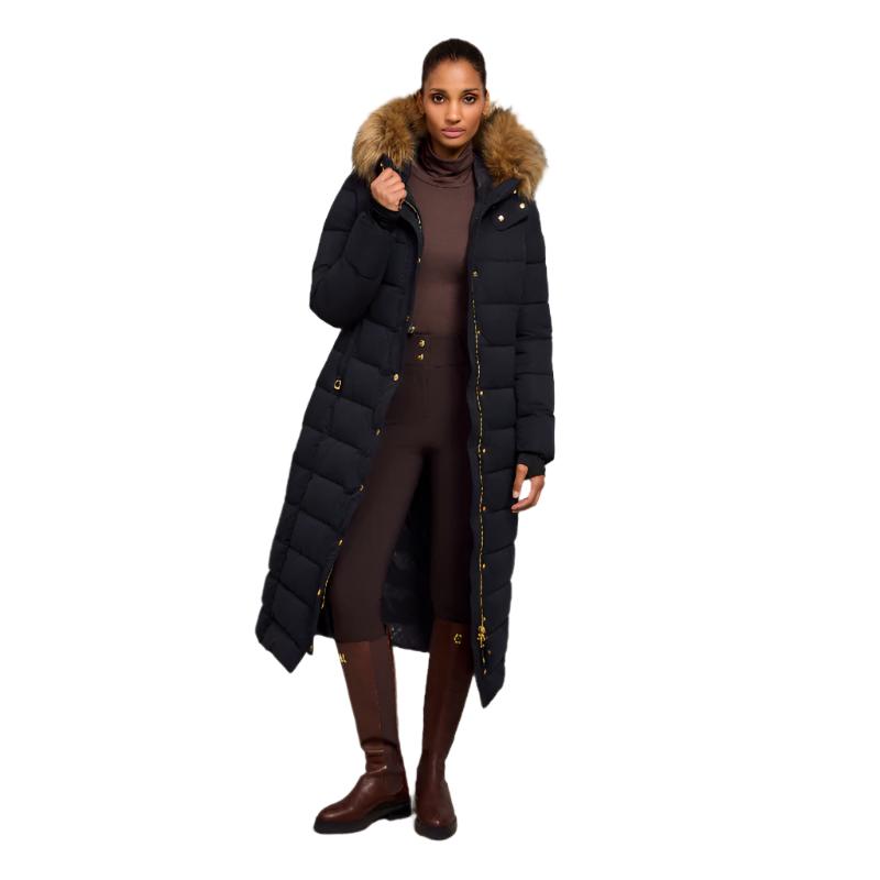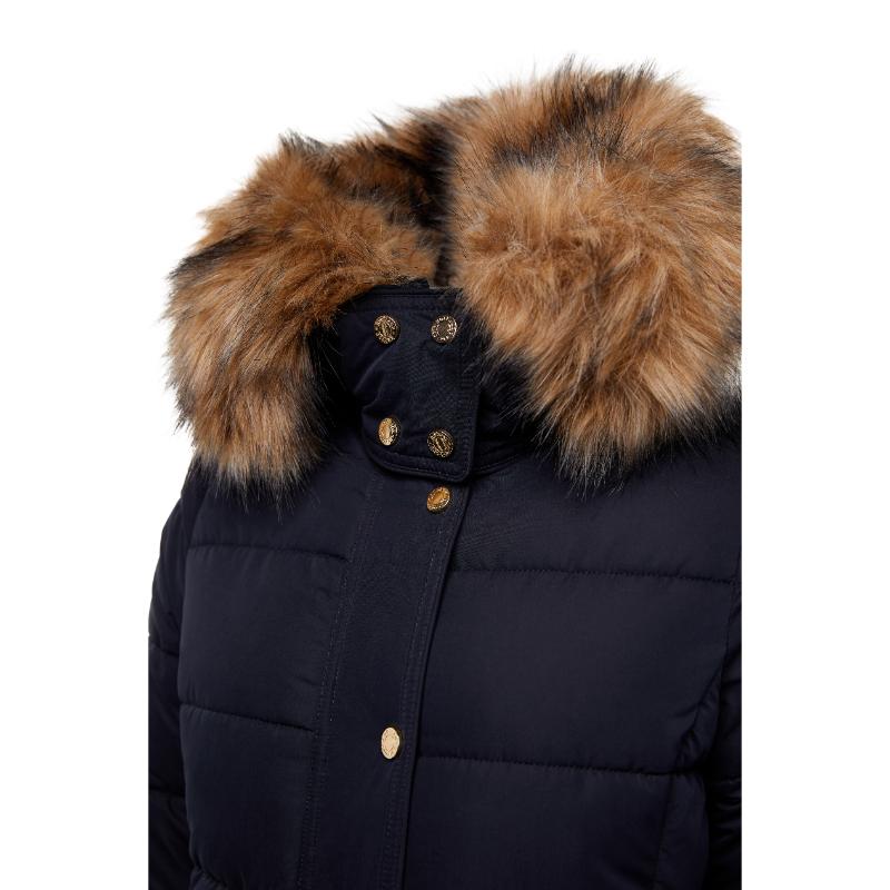 Discover the ultimate combination of style and warmth with the Holland Cooper Stoneleigh Longline Ladies Coat. Made with princess seams providing a slim, tailored fit and longline silhouette, this coat is both fashion-forward and functional. Stay cosy with a detachable faux fur hood collar and neoprene storm cuffs. With eco-fill and iconic HC hardware, this coat is perfect for braving chilly winter days in style.