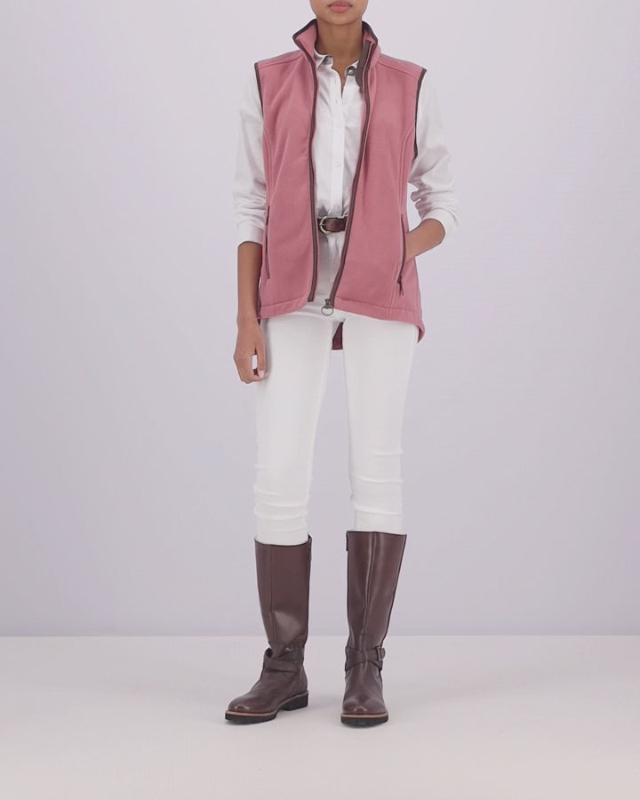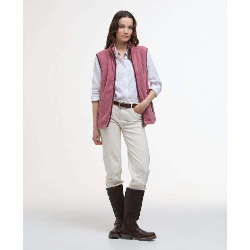 Stay warm and stylish with the Barbour Country Colton Ladies Fleece Gilet. This cosy gilet features suedette binding and convenient zipped pockets. The brand logo is located near the left pocket and centre back neck. Perfect for everyday wear and outdoor adventures.