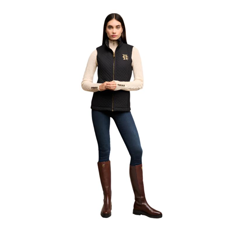 Step into a new season in style and comfort with our Holland Cooper Cambridge Ladies Gilet. With a slim fit design that flatters any silhouette, the shearling elastic side panels provide a tailored, comfortable fit. The applique bullion badge on the chest and antique brass metal hardware add a touch of classic HC charm to this modern design.