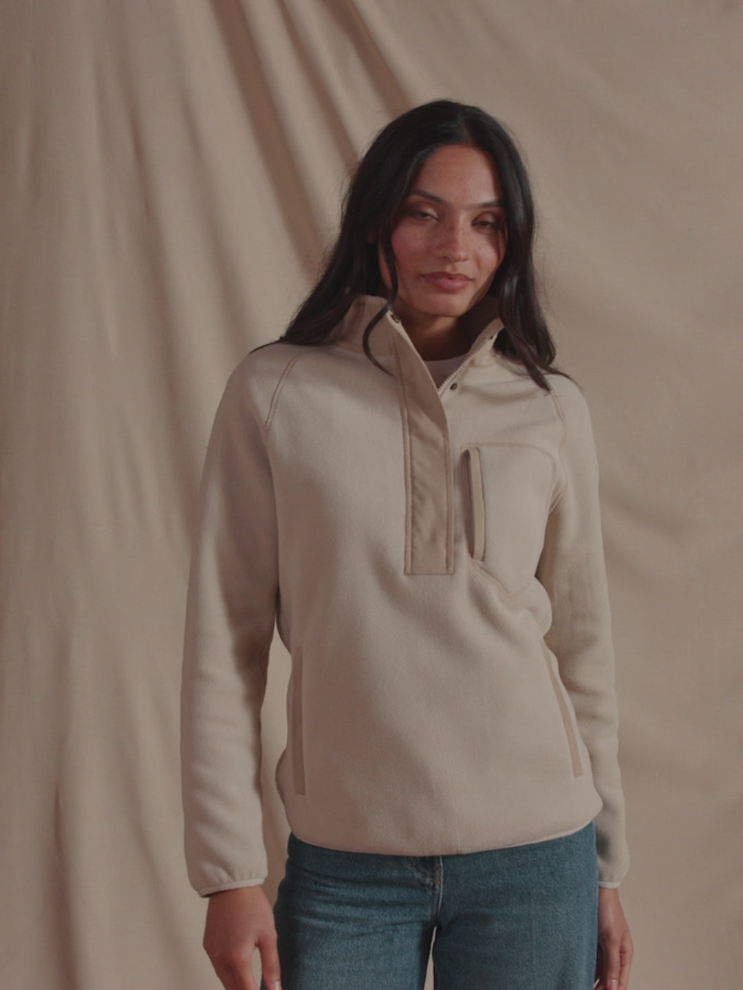Casual, cosy and beautifully finished, the Aria Quarter Zip Fleece represents a thoughtful addition to our fleece collection. Crafted from exceptional quality polar fleece with double bonding for superior warmth without requiring a lining, it delivers softness alongside refined style. The design features contrast detailing at the neck, placket and back yoke, complemented by subtle rubberised branding for an understated finish. This lightweight yet warming layer strikes the perfect balance for cool-weather wear, offering an ideal alternative to the Agnes Fleece Jacket. Available in two flattering neutral colourways, it combines outdoor practicality with rural-ready elegance.