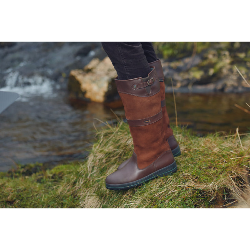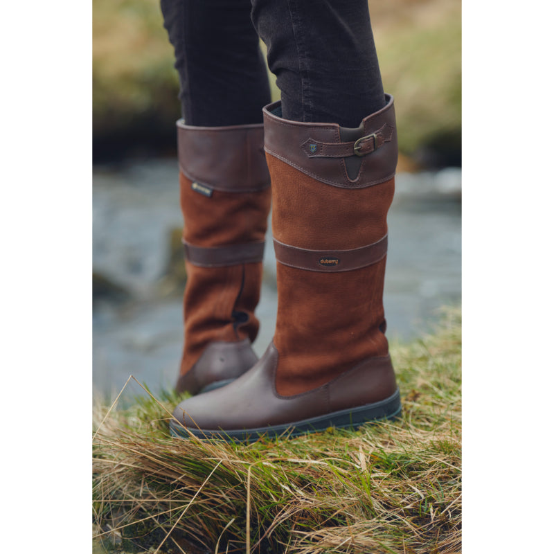 The Dubarry Dunmore GORE-TEX Ladies Waterproof Boot is packed with technical features to help feet stay warm and dry over the winter. A water-resistant and breathable leather outer sits atop a rubber sole that offers maximum protection from rainwater and wet ground, while a removable cushioned footbed offers excellent support on uneven surfaces. An adjustable buckle with a Lycra insert ensures the perfect fit, complemented by a shaped ankle with an elasticated heel for ease of entry, aided by finger pulls inside the boot.