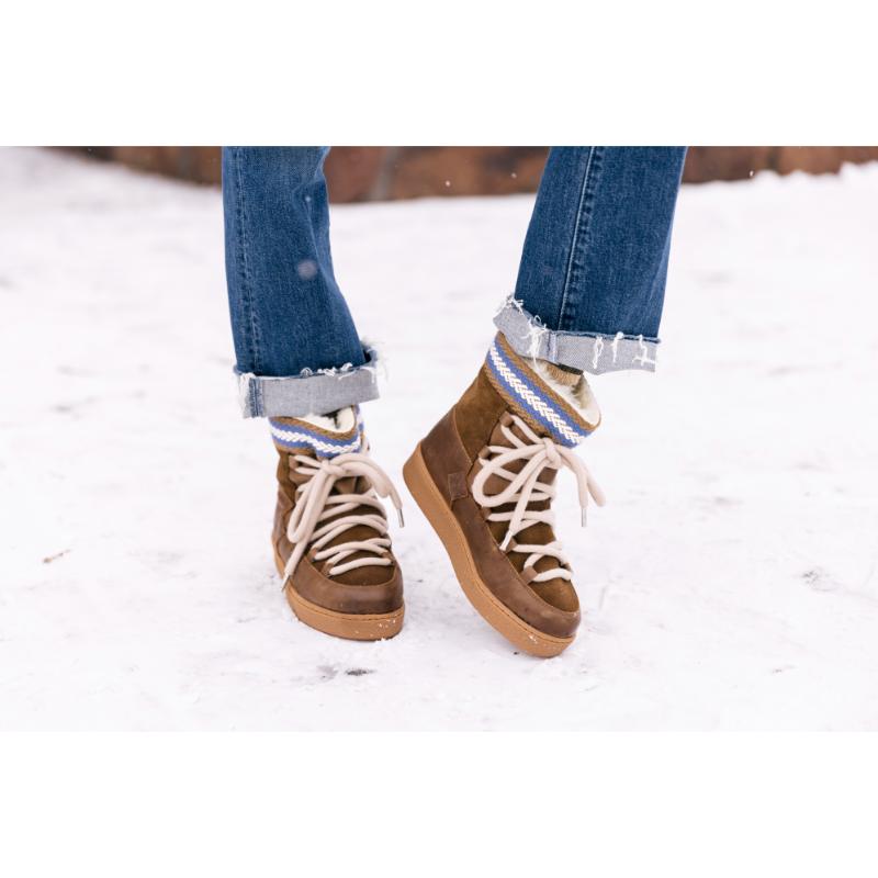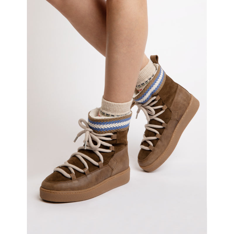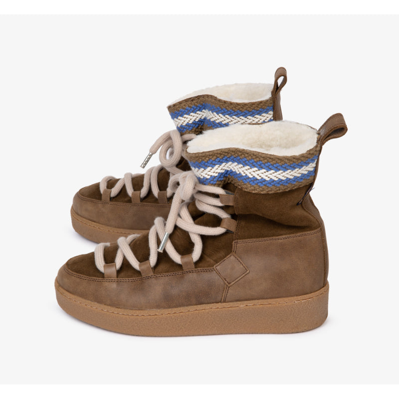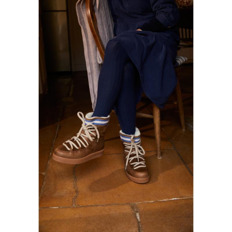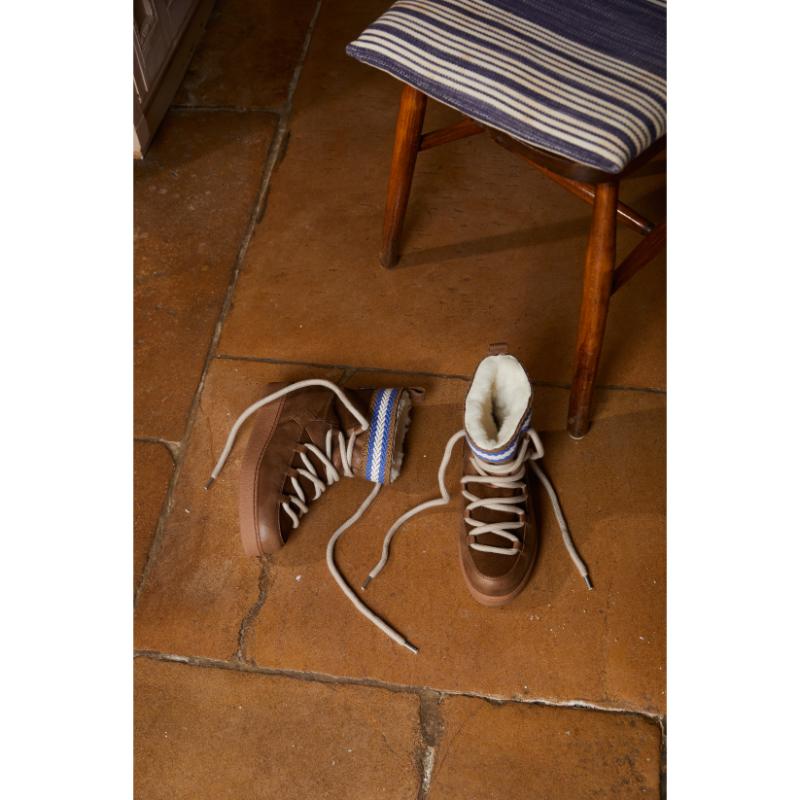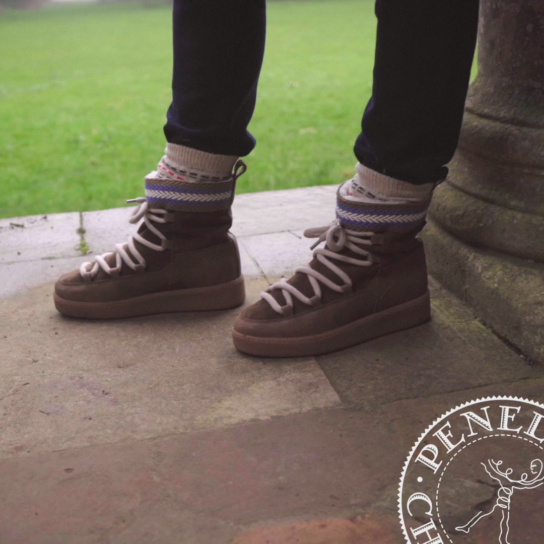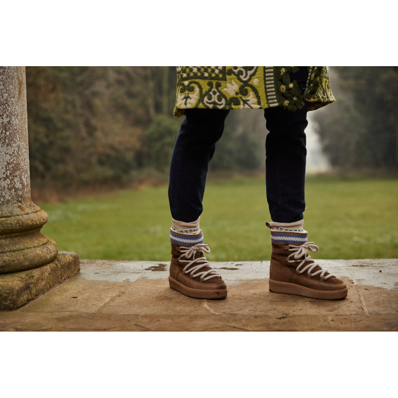 The Penelope Chilvers Cosmos Leather Wool-Lined Ladies Boot in Brown is a luxurious snow boot that combines style and practicality. Made with sustainably sourced suede and leather, with organic cotton stripe trim, this boot is both fashionable and eco-friendly. The 100% wool lining provides superior warmth and comfort, making it the perfect boot for the coldest days. With its simple style and chunky laces, this boot is easy to pull on and perfect for life on the go.