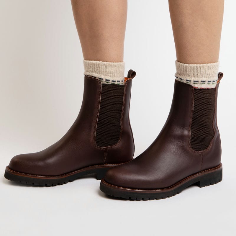 The Penelope Chilvers Doma Leather Ladies Ankle Boot is the perfect combination of style and comfort. It features an elongated shaft and chunky rubber sole for an urban take on the classic, and is crafted in polished Spanish leather with diamond-weave elasticated side gussets for an equestrian-inspired aesthetic. Whether you're walking the city streets or in the countryside, the Doma is the perfect ankle boot.