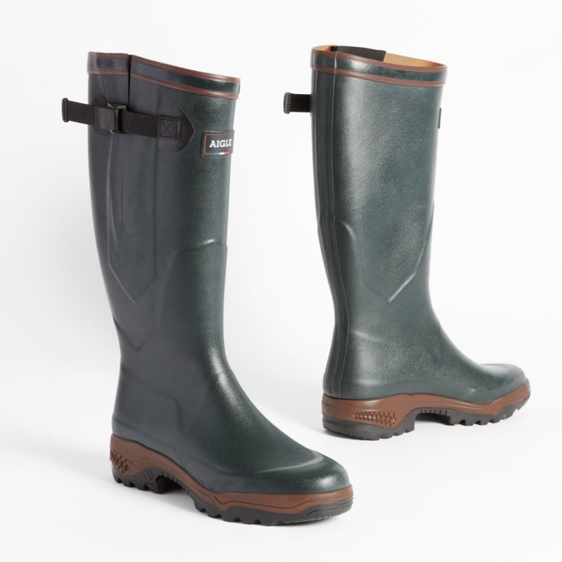 The Aigle Parcours 2 Vario Wellington Boots provide ultimate comfort and protection for any terrain. Made with high quality natural rubber, these boots are 100% waterproof and feature a shock absorbing cushion, allowing you to walk further without getting tired. The tri-density rubber sole and abrasion-resistant outsole ensure maximum grip and stability, while the flexible upper and adjustable waterproof gusset provide a superior fit for all day wear. The quick drying lining and reinforced construction provide added durability and comfort.