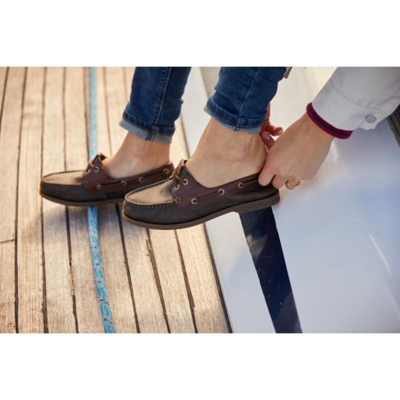 The Antigua Ladies Deck Shoe from Ariat is beautifully designed and based on traditional boat shoe styling. Crafted from a quality leather and nubuck upper in a moccasin style construction, these shoes boast textured gum rubber outsoles for grip and traction no matter what the surface. Complete with the classic eyelet lacing, these shoes offer subtle style and superb comfort.
