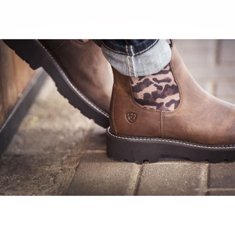 Ariat Fatbaby Twin Gore Ladies Chelsea Boot - Distressed Tan/Leopard Gore