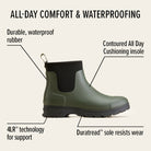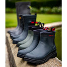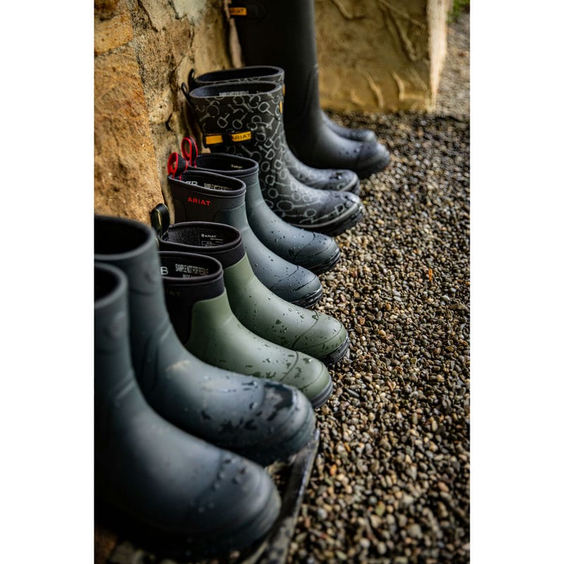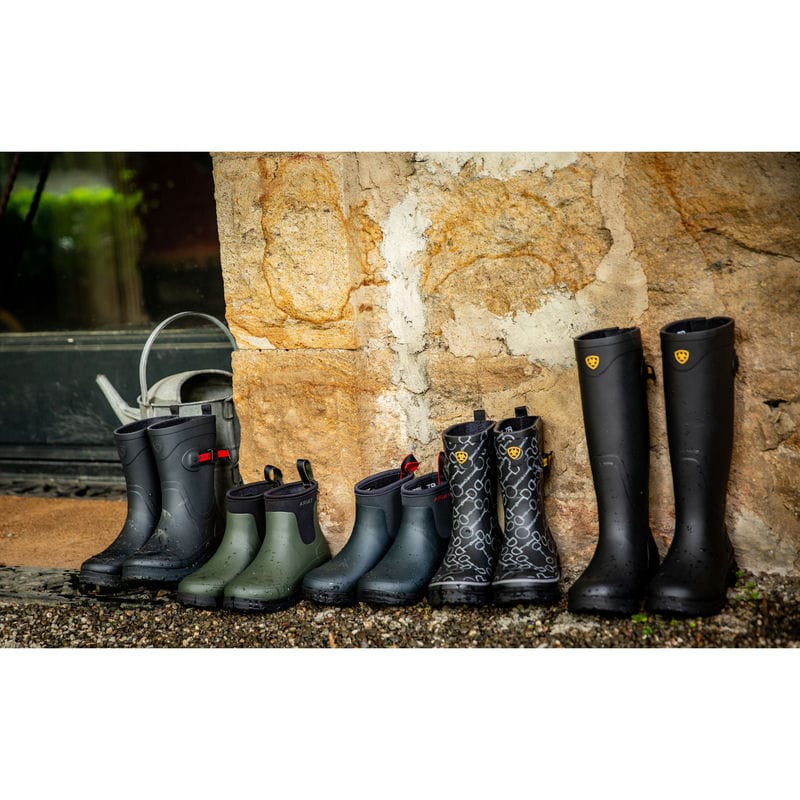 The Ariat Kelmarsh Shortie Waterproof Ladies Wellington Boots are easy to wear and incredibly practical, from pottering around the garden to stable duties or a wet dog walk. Crafted from fully waterproof rubber with Ariat's 4LR sole unit that provides support, stability and is durable and breathable for all day comfort. There is a jersey lining, adjustable nylon strap closure for a snug fit around the ankle, and boot pulls and 'heel kick' for easy on and off. Although the highly durable Duratread outsole is resistant to damaging yard acids, these boots are not suitable for horse riding.