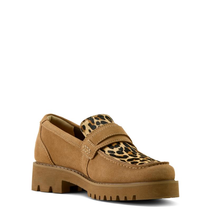 Ariat Stratford Lug Ladies Loafer - Tan Suede/Leopard Hair On
